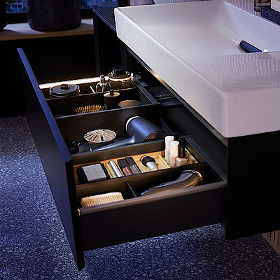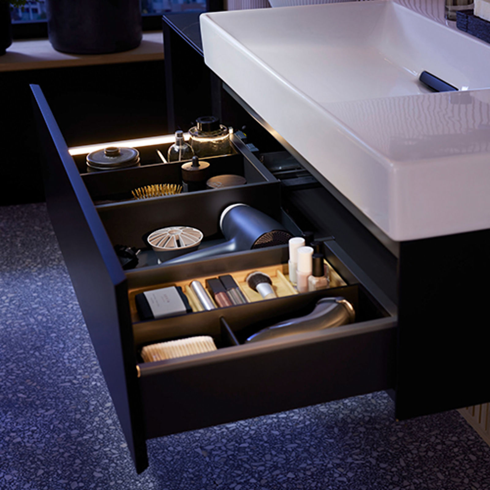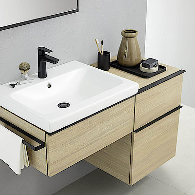 Badmöbel, unter anderem der Badserie ONE, sind bereits in der Farbe Schwarz erhältlich.