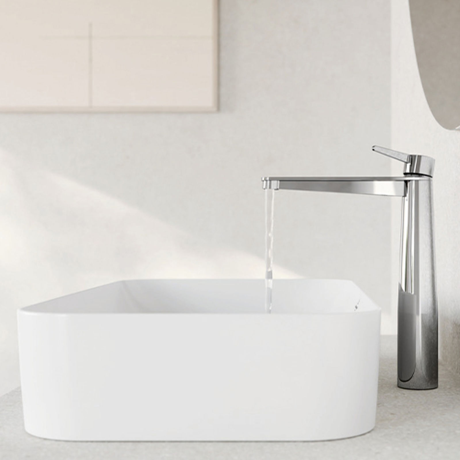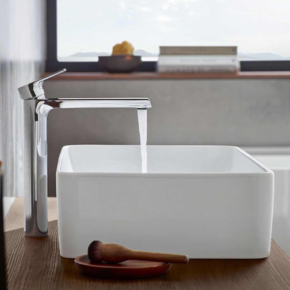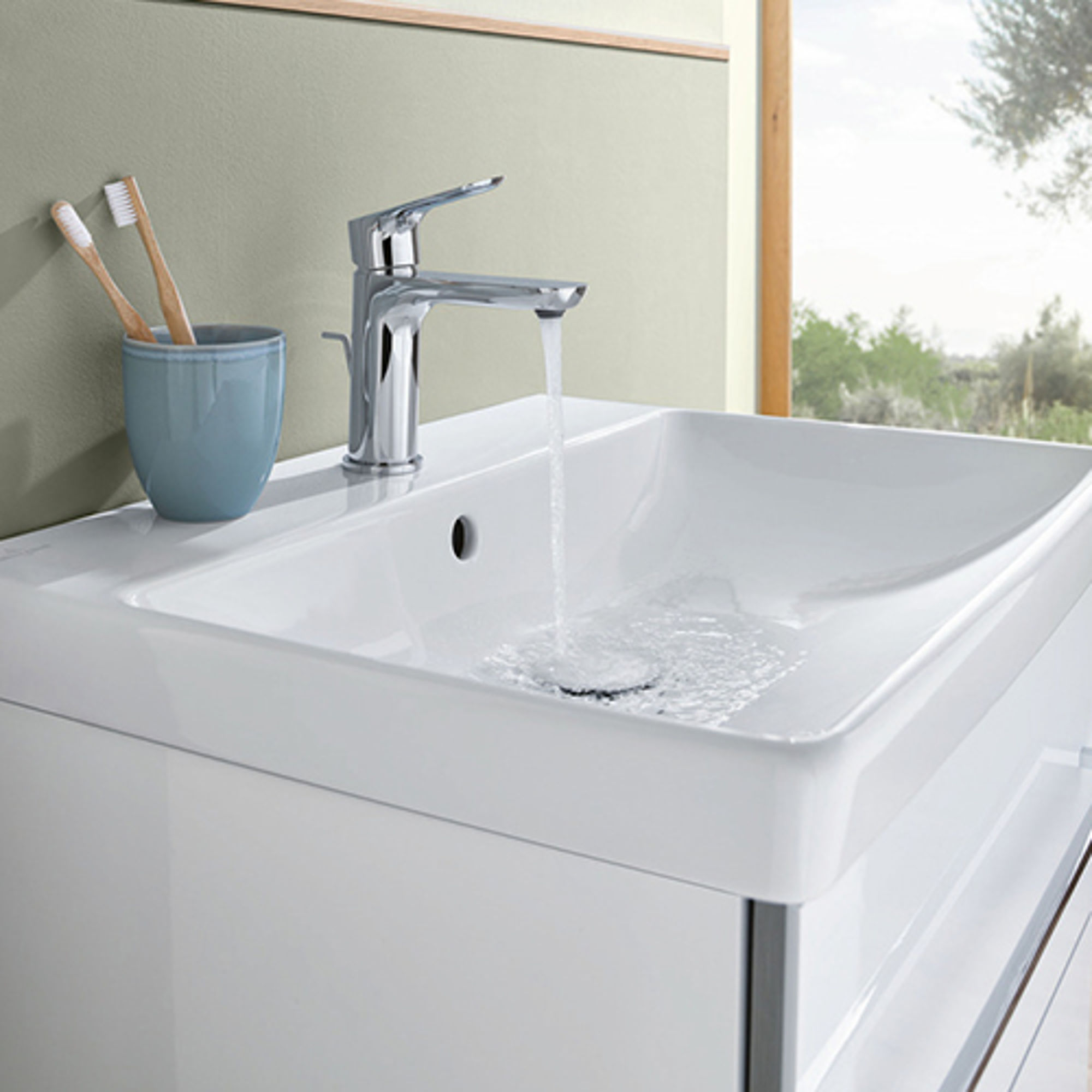 Die Marke Villeroy & Boch steht für erstklassige Materialien und exakte Verarbeitung. Auch bei den Armaturen setzt das Unternehmen auf höchste Qualität: Ob bei der Auswahl der hochwertigen Komponenten, der Verarbeitung oder der Maßgenauigkeit. Designt, entwickelt und getestet in Deutschland bieten sie Funktionalität, Langlebigkeit und einen effizienten Wasserverbrauch. Dafür sorgen clevere Funktionen wie AquaSmart, womit der Wasserverbrauch auf umweltfreundliche 5 Liter pro Minute begrenzt wird. Im Vergleich zu einer herkömmlichen Armatur lassen sich so bis zu 60 Prozent Wasser sparen – ohne Verlust an Leistung und Komfort. Die EasyClean-Funktion im Strahlregler sorgt für eine einfache Reinigung und trägt dazu bei, dass sich Kalk und Schmutz nicht so leicht absetzen.