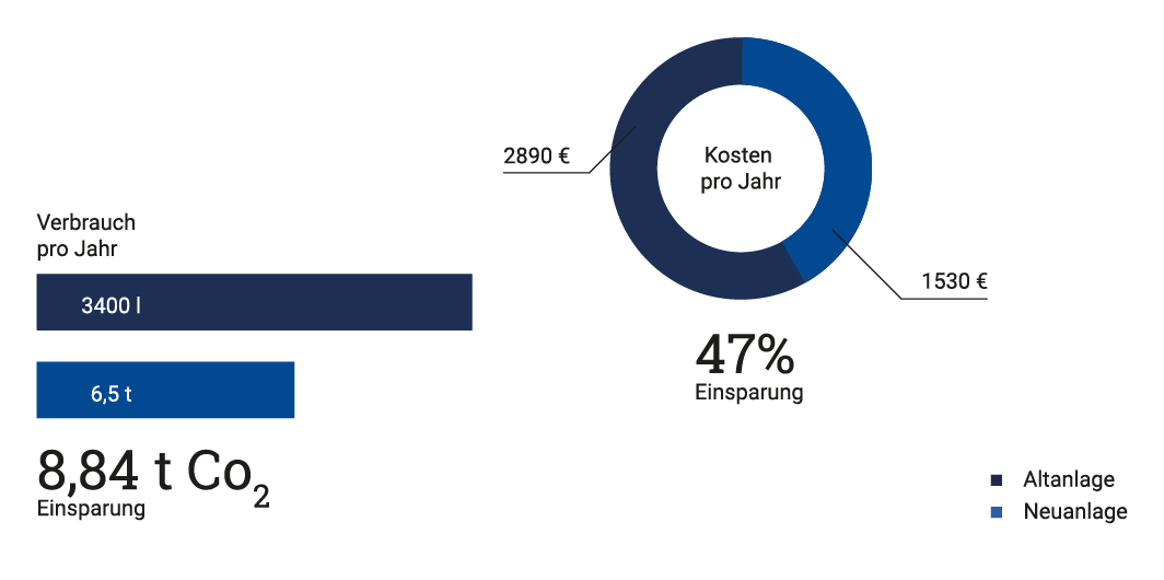 Wenn Sie bisher mit einem Ölheizkessel heizen, bietet es sich an, dass auch Ihre neue Heizung eine Ölheizung wird. Gerade in älteren Gebäuden entspricht die Öl-Brennwerttechnik leider oftmals nicht aktuellen Energiestandards. Hier ist es empfehlenswert, auf eine neue Ölheizung umzusteigen. Denn mit moderner Öl-Brennwerttechnik nutzen Sie nicht nur die Verbrennungswärme, sondern auch die Wärme, die bei veralteter Heiztechnik ungenutzt entweicht.