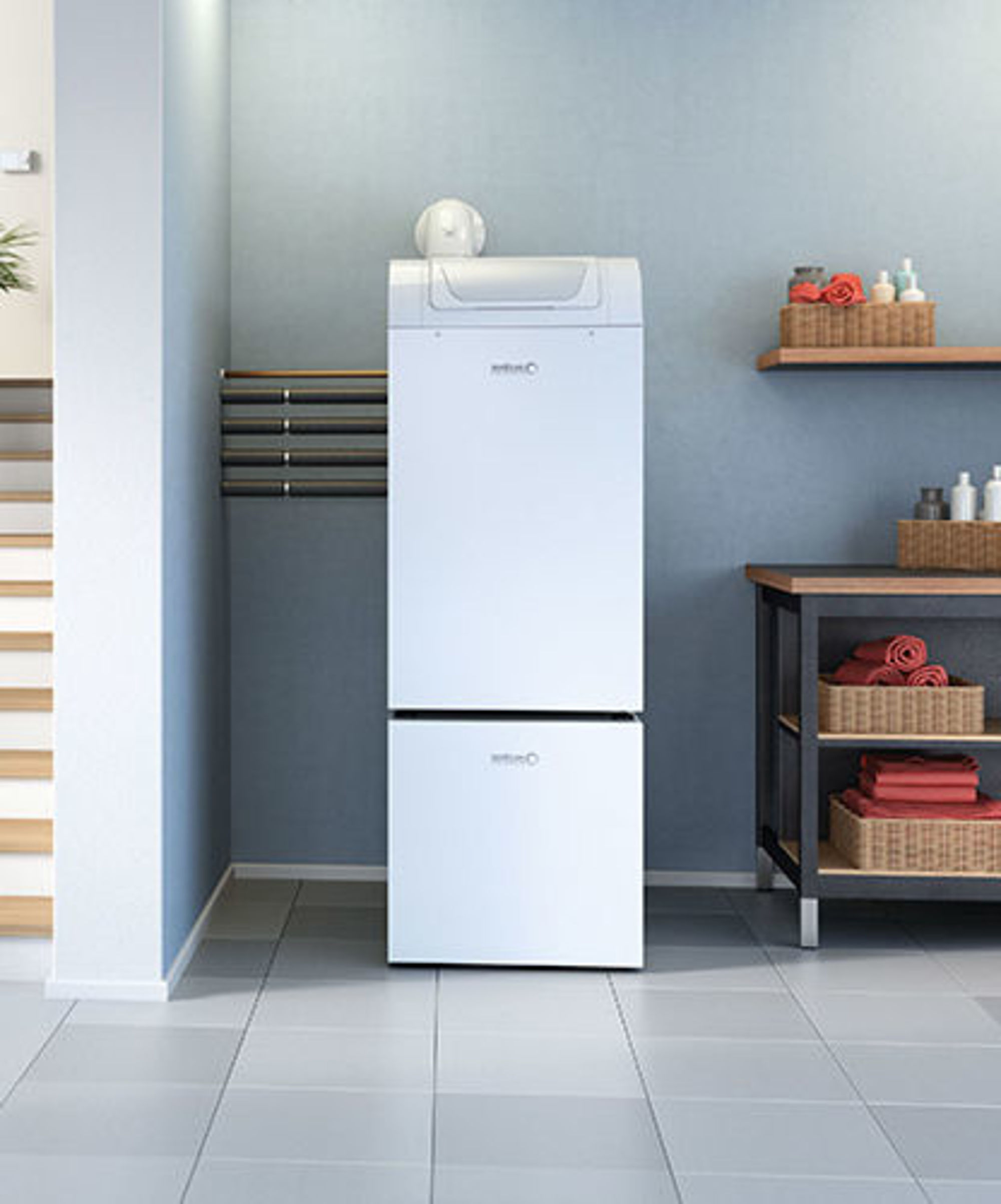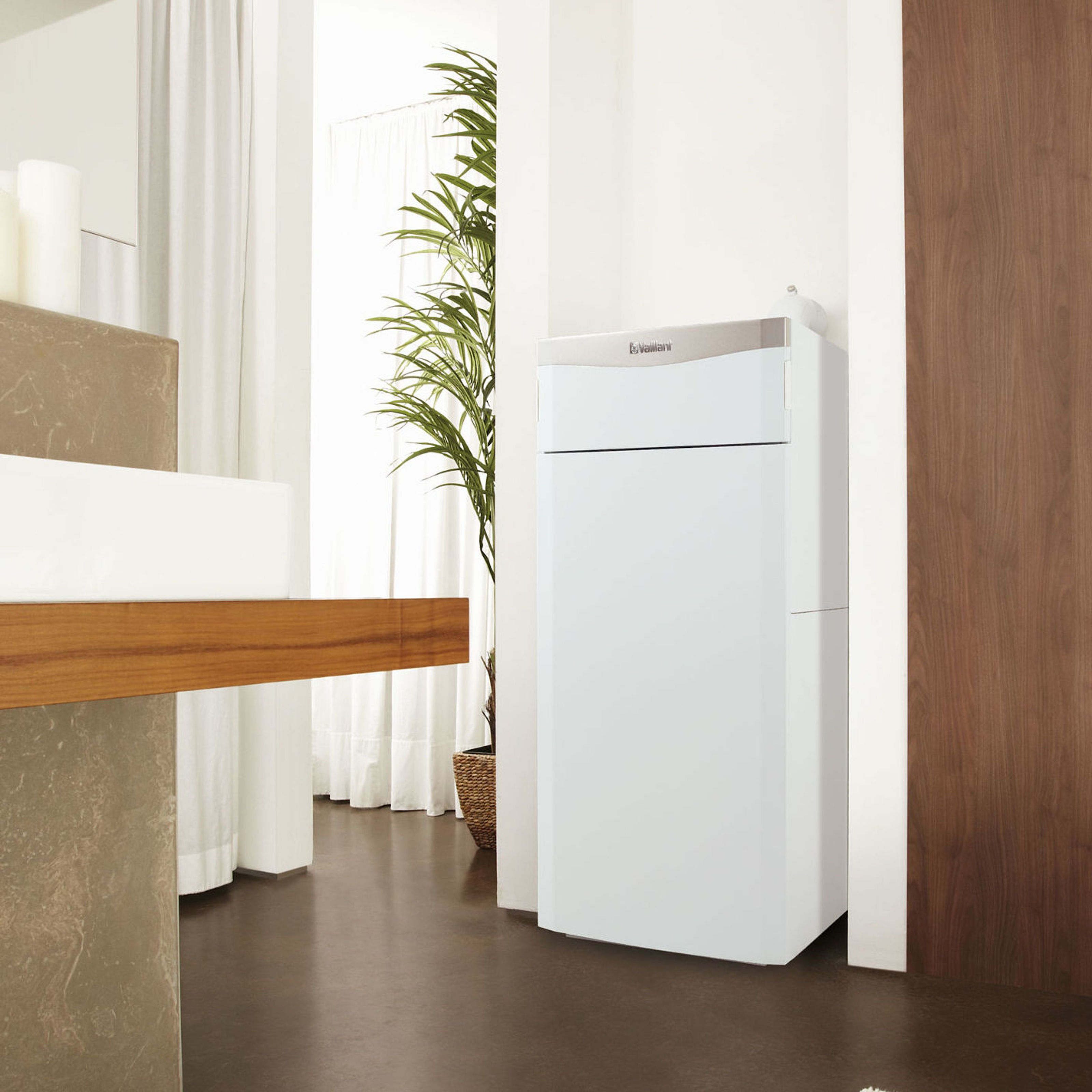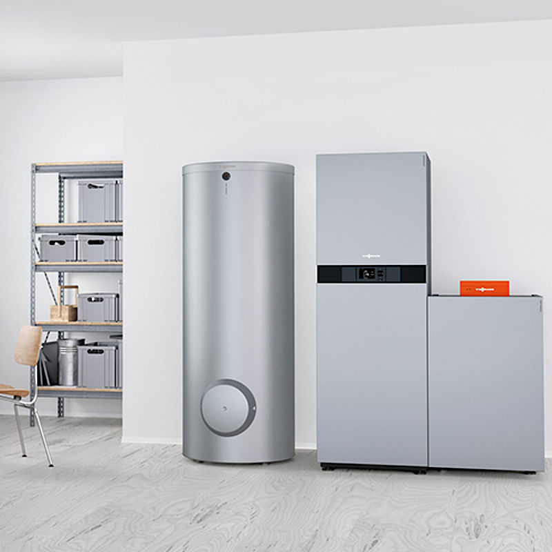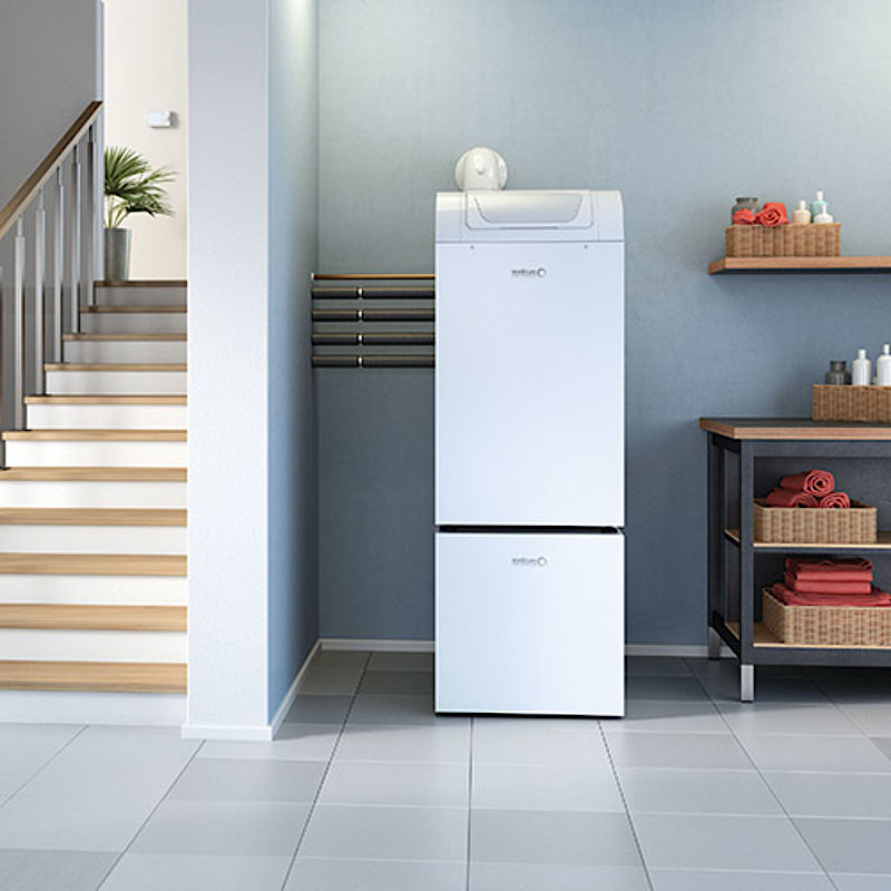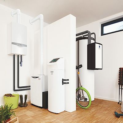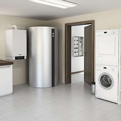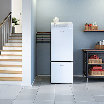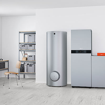 Durch die Kombination mit einem Gas- oder Öl-Brennwertgerät gelingt auch in Mehrfamilienhäusern eine individuelle Trinkwassererwärmung und auch höherer Wärmebedarf kann damit gewährleistet werden. Sollte die Leistung der Wärmepumpe nicht ausreichen, wird das Gas- oder Öl-Brennwertgerät zugeschaltet, sodass die beiden Wärmeerzeuger parallel fahren. Auch die Auswahl des Energieträgers ist frei.