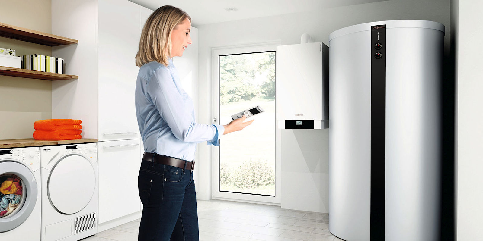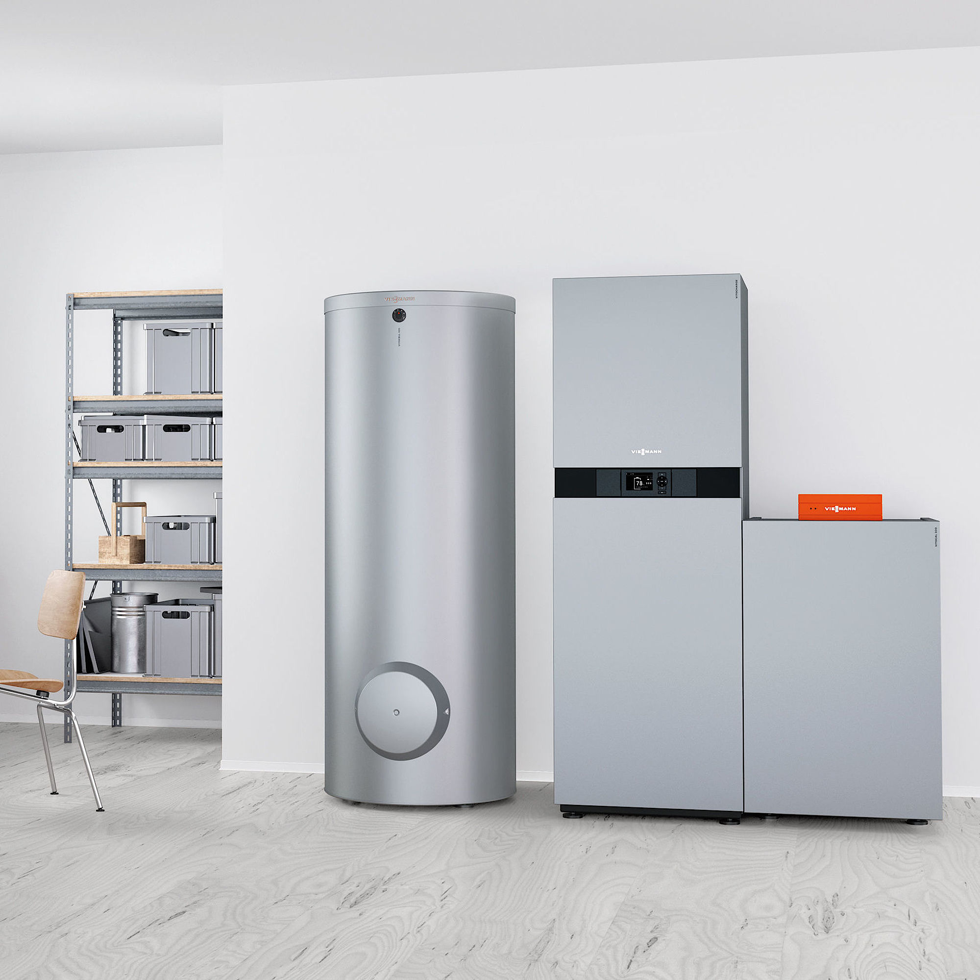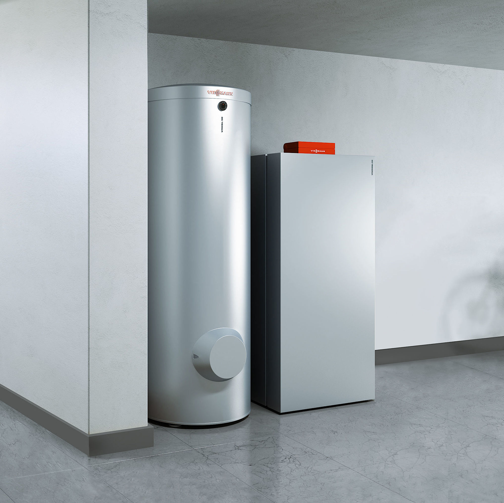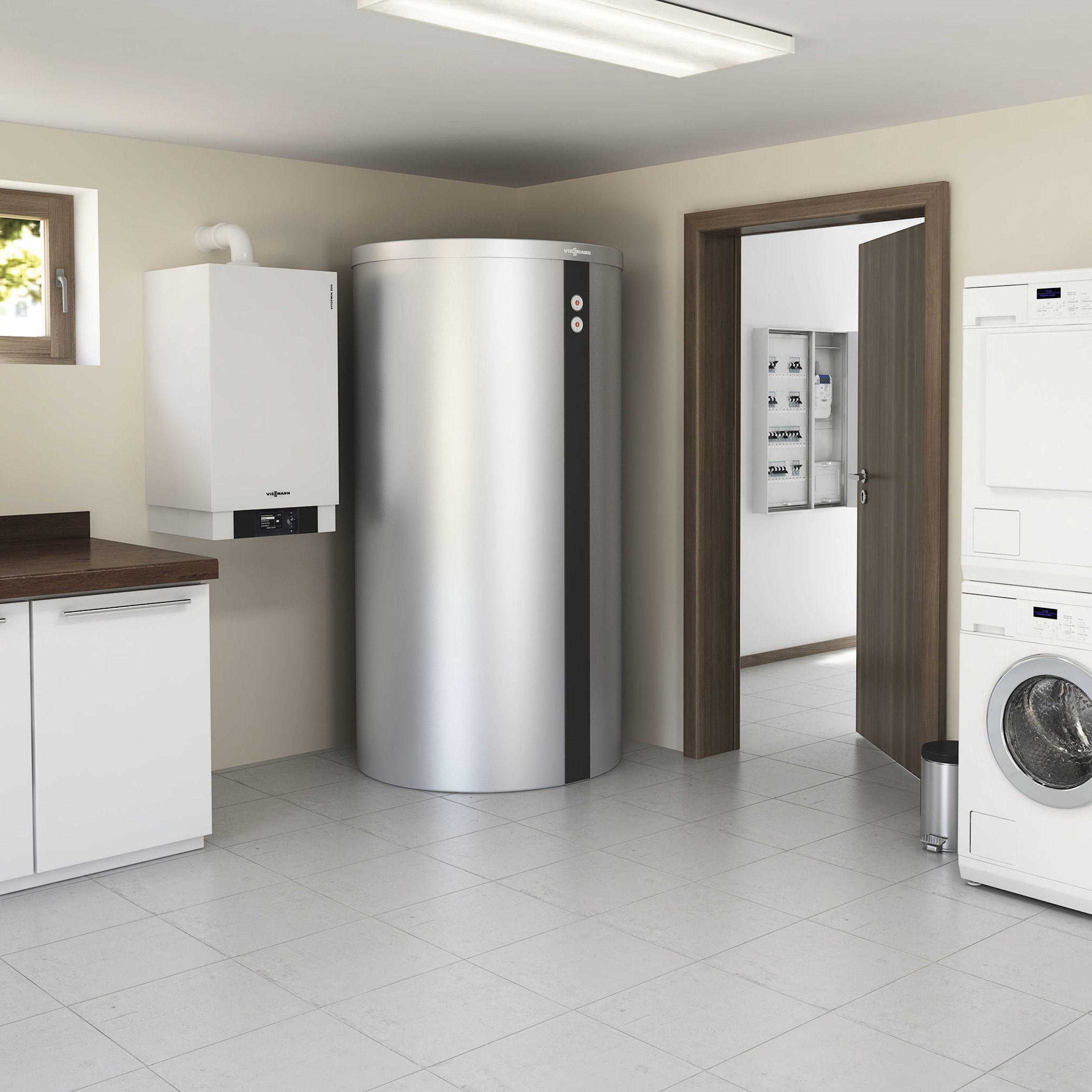 Durch die Kombination mit einem Gas- oder Öl-Brennwertgerät gelingt auch in Mehrfamilienhäusern eine individuelle Trinkwassererwärmung und auch höherer Wärmebedarf kann damit gewährleistet werden. Sollte die Leistung der Wärmepumpe nicht ausreichen, wird das Gas- oder Öl-Brennwertgerät zugeschaltet, sodass die beiden Wärmeerzeuger parallel fahren. Auch die Auswahl des Energieträgers ist frei.