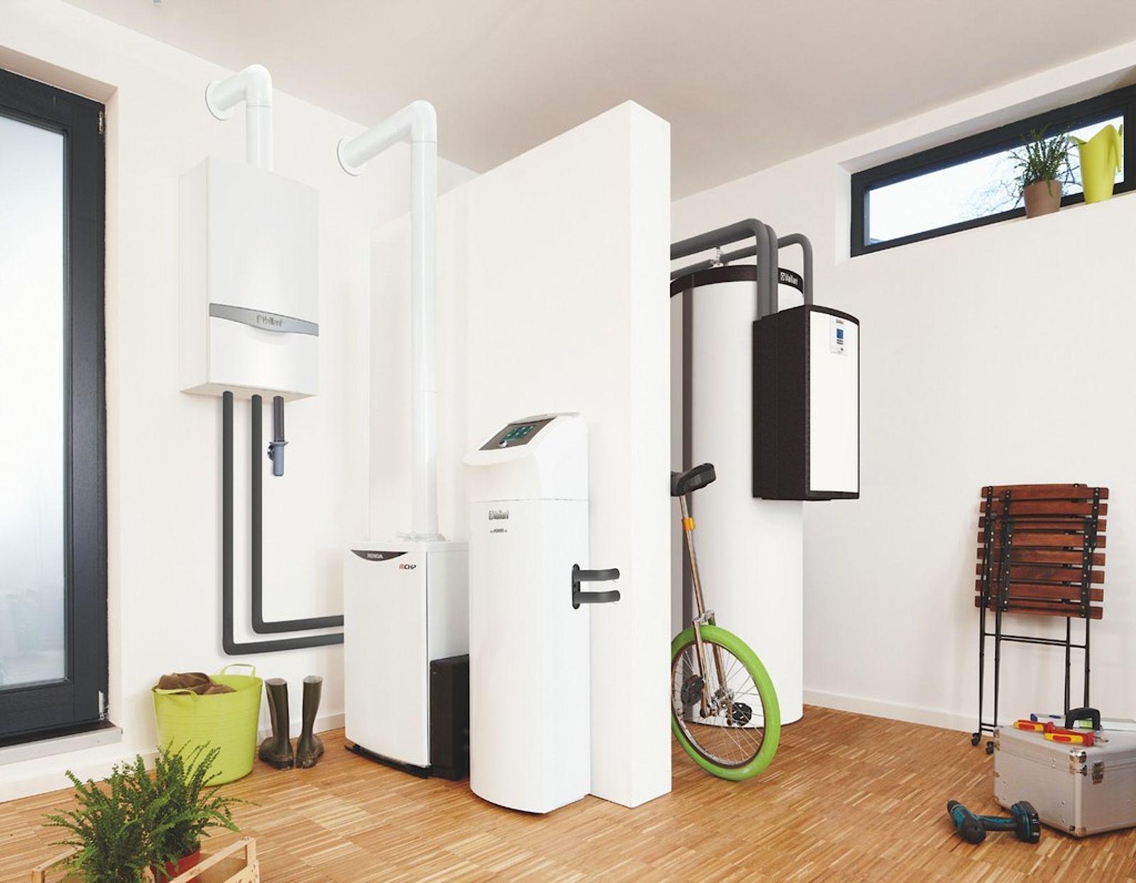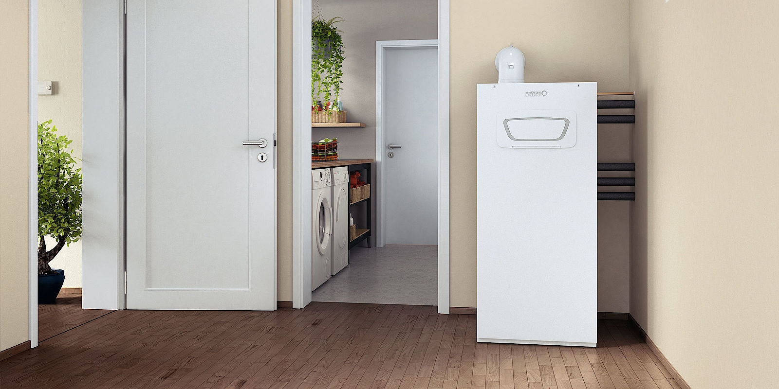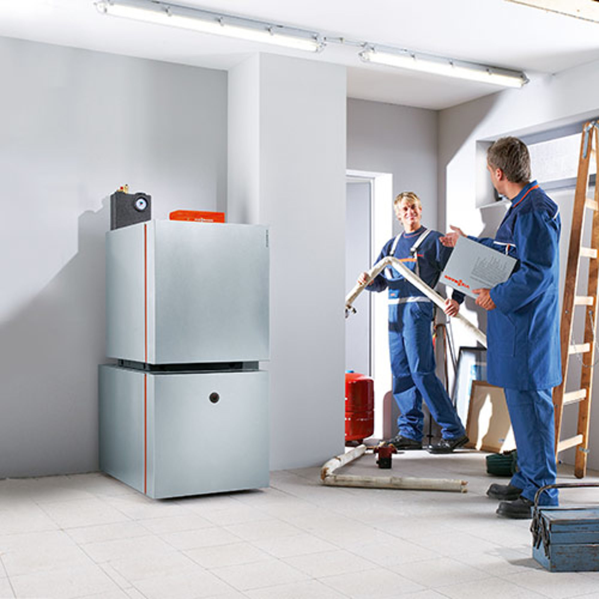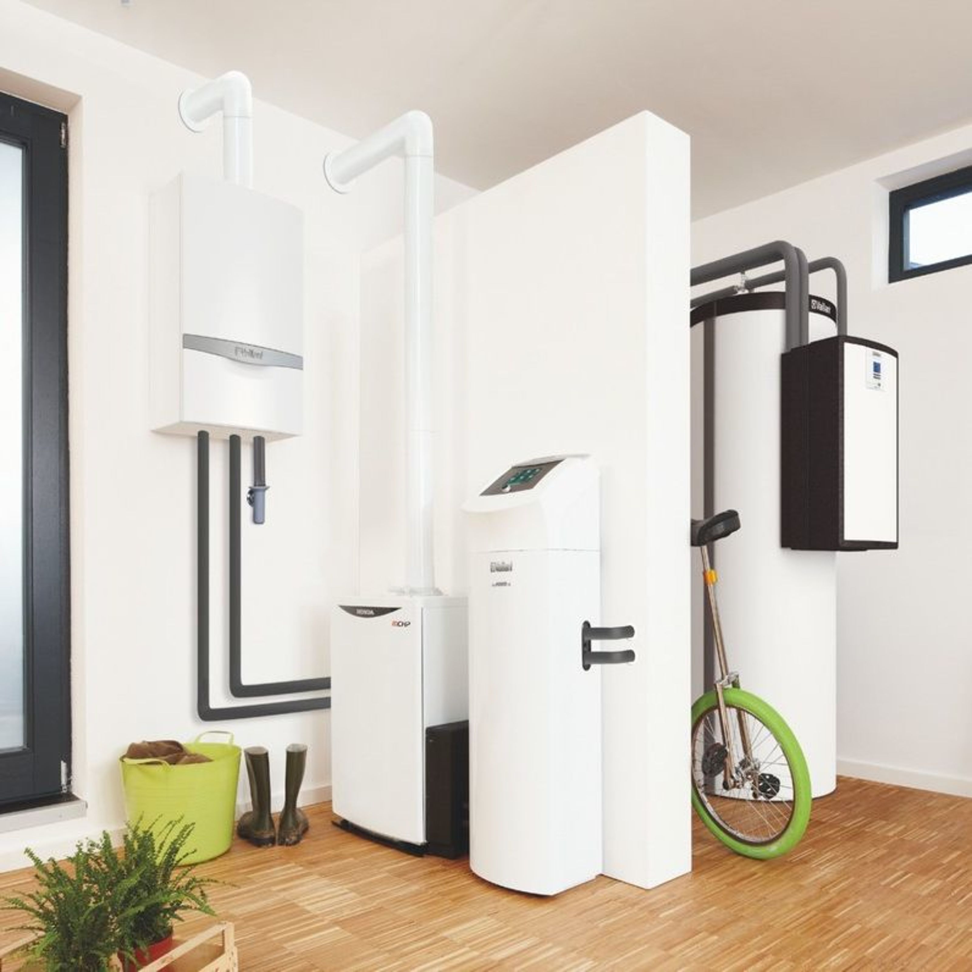 Durch die Kombination mit einem Gas- oder Öl-Brennwertgerät gelingt auch in Mehrfamilienhäusern eine individuelle Trinkwassererwärmung und auch höherer Wärmebedarf kann damit gewährleistet werden. Sollte die Leistung der Wärmepumpe nicht ausreichen, wird das Gas- oder Öl-Brennwertgerät zugeschaltet, sodass die beiden Wärmeerzeuger parallel fahren. Auch die Auswahl des Energieträgers ist frei.