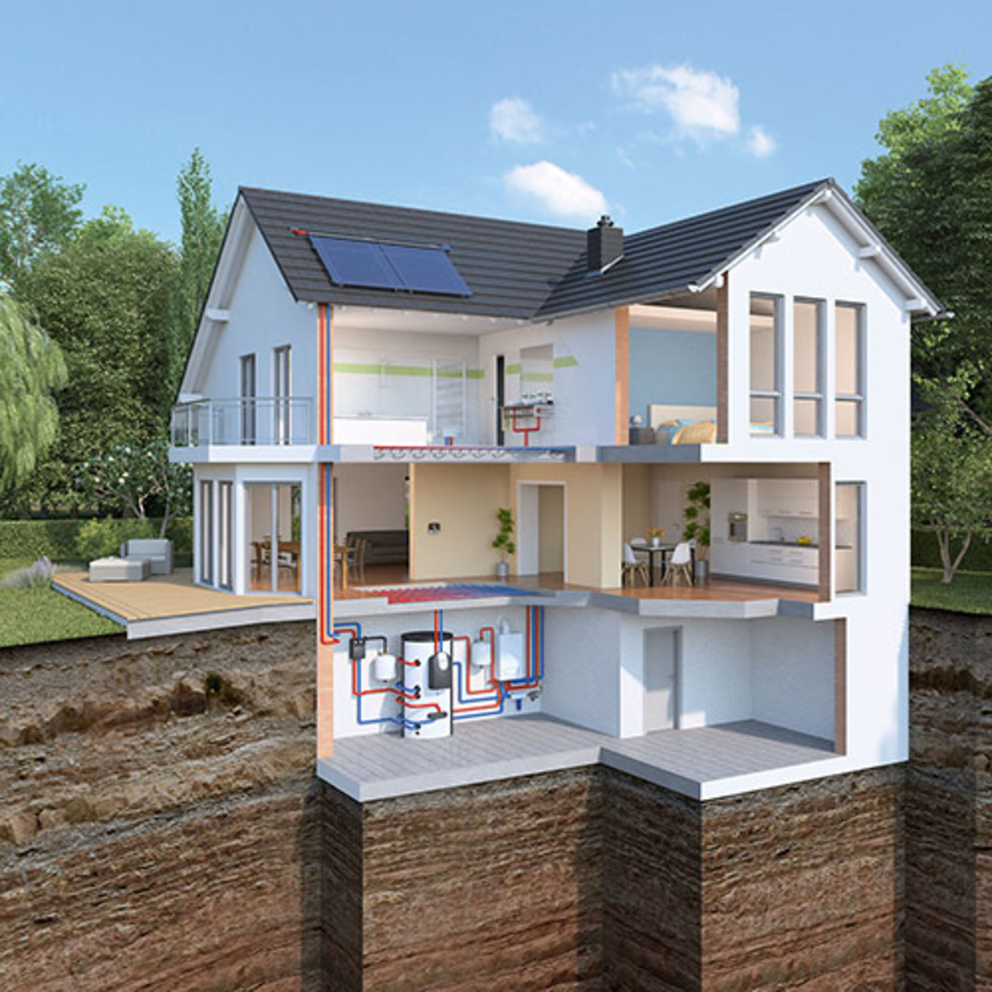 Das Konzept einer Wärmepumpe als Heizsystem ist ebenso wirkungsvoll wie nachhaltig. Bei einer Wärmepumpe wird die natürliche Energie aus dem Grundwasser (Wasser-Wasser-Wärmepumpen), der Erde (Sole-Wasser- Wärmepumpen) oder der Luft (Luft- oder Luft-Wasser Wärmepumpen) in nutzbare Wärme für Heizung und Warmwasser umgewandelt. Wärmepumpen helfen so nicht nur beim Energie sparen, sondern sind auch besonders umweltfreundliche Heizsysteme.