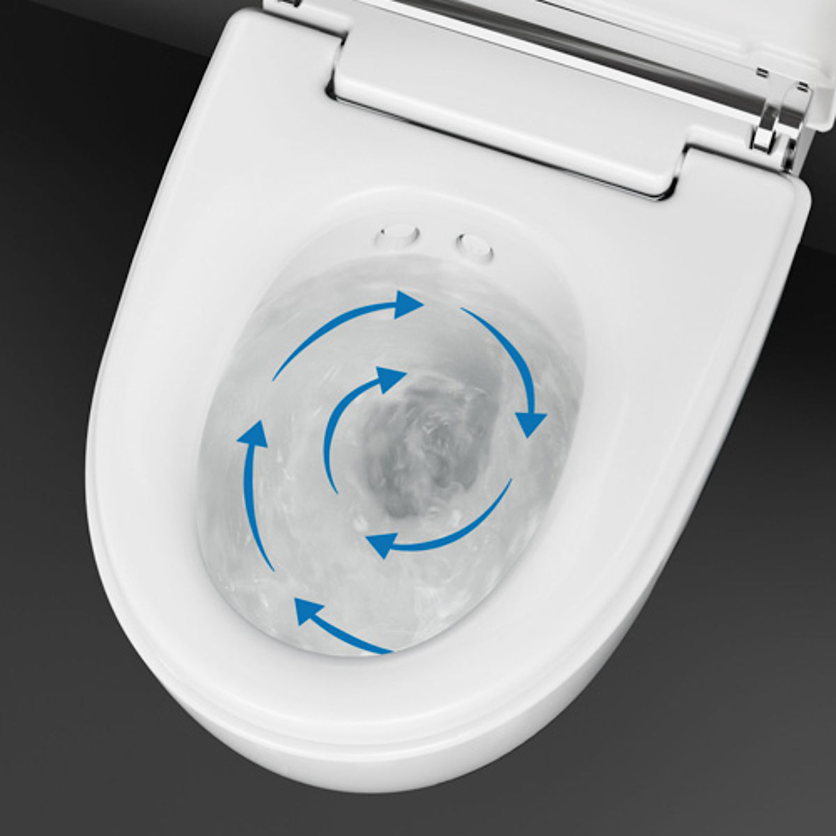 Mitgedacht: Das spülrandlose Dusch-WC AquaClean Mera von Geberit erzeugt einen Strudel, der die Keramik besser sauber hält und das Putzen erleichtert.
