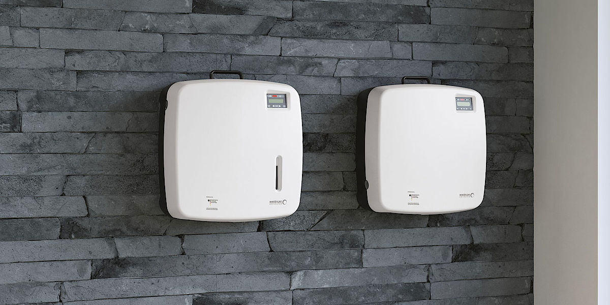 Das Duo sorgt für eine lange und effiziente Lebensdauer der Heizungsanlage, bei Neuinstallationen ebenso wie bei Altanlagen. Insbesondere bei Sanierungen empfiehlt Brötje, beide Produkte möglichst zusammen einzusetzen. Für die Aufbereitung und Behandlung des Füll- bzw. Ergänzungswassers ist das AguaSave Modul zuständig. Es lässt sich leicht in die Hausinstallation einbinden. Das im Gerät produzierte vollentsalzte Wasser wird mit Rohwasser auf einen definierten Wert verschnitten. Ein Überfahren der Kapazität der Harzkartusche ist dabei aufgrund der Leitfähigkeitsüberwachung ausgeschlossen. Anschließend wird ein Vollschutzprodukt mengenproportional hinzugegeben und vollautomatisch in das System eingespeist. So lässt sich der pH-Wert und die Härte stabilisieren sowie die Bildung von Biofilmen und das Ausfallen von Härtebildnern verhindern. Ablagerungen werden gelöst und in Schwebe gehalten, um über den kontrollierten Wasseraustausch oder das Modul AguaClean aus dem System entfernt zu werden.