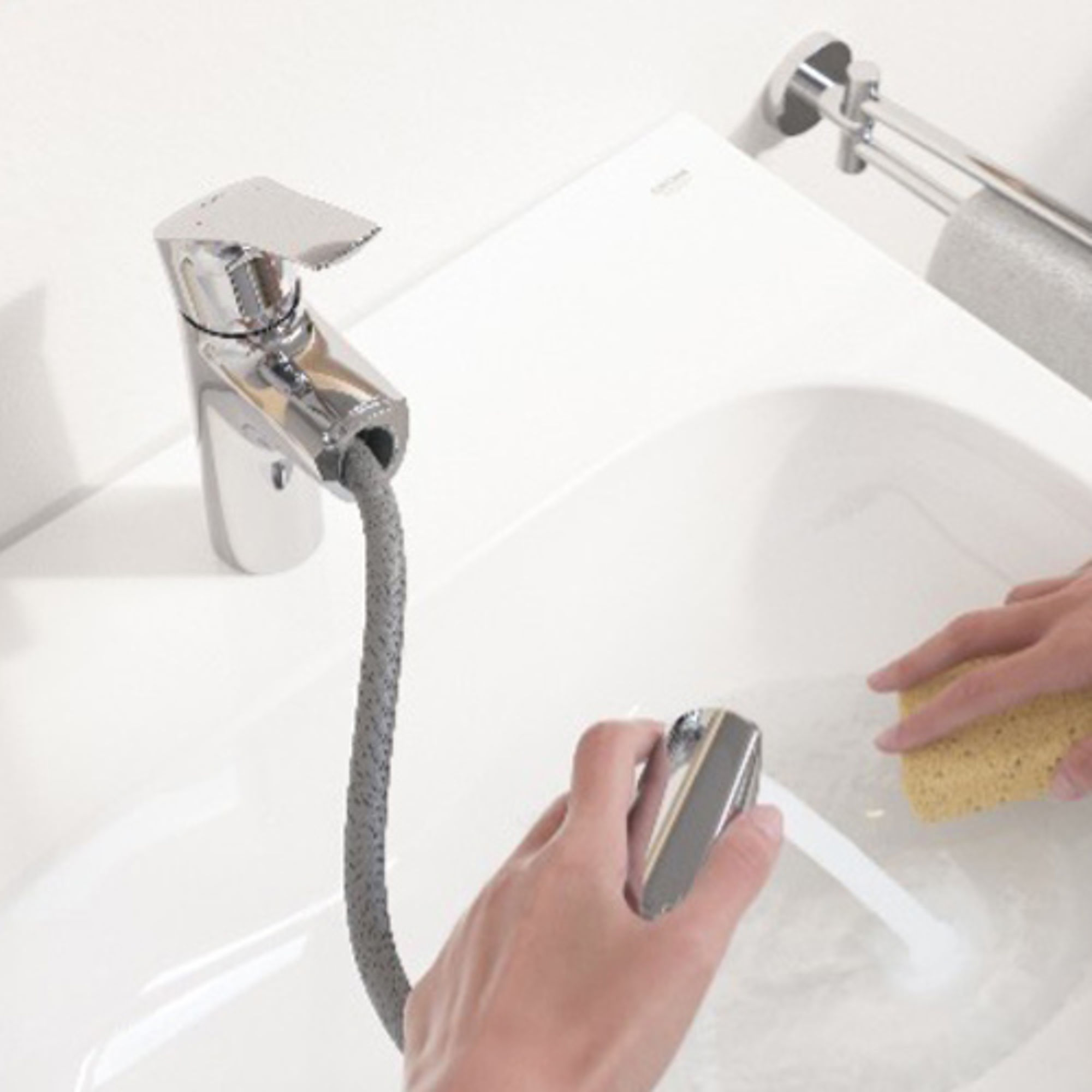 Die Variante mit ausziehbarem Auslauf bietet noch mehr Komfort und volle Flexibilität – ideal zum Haarewaschen oder zum Reinigen des Waschtisches.