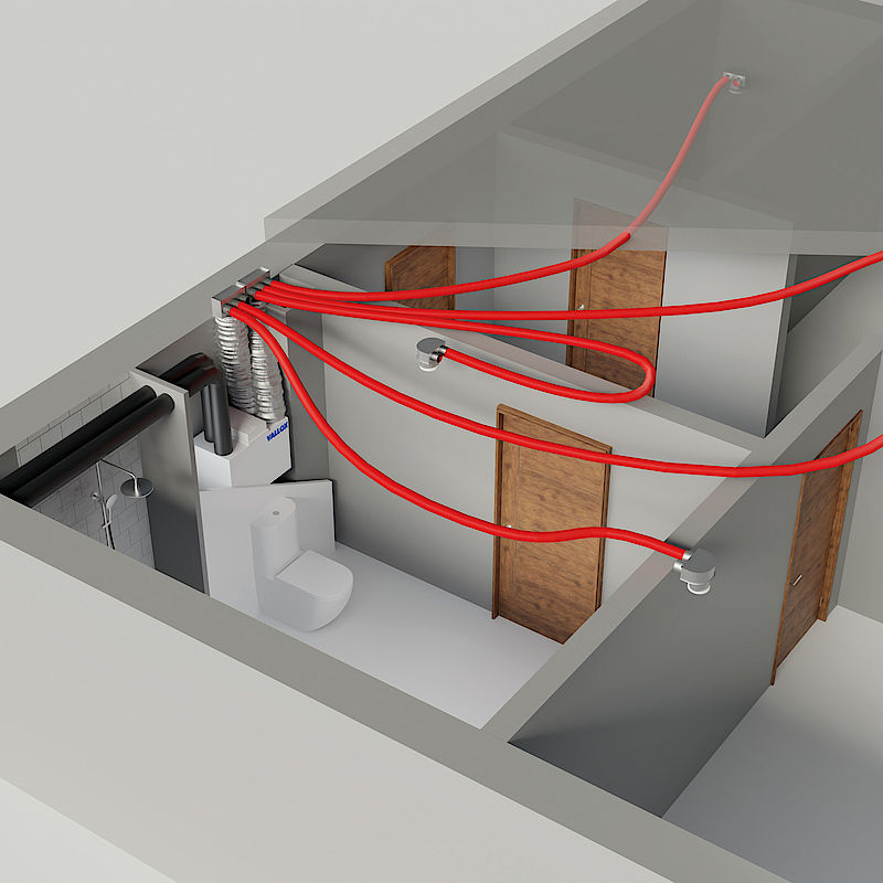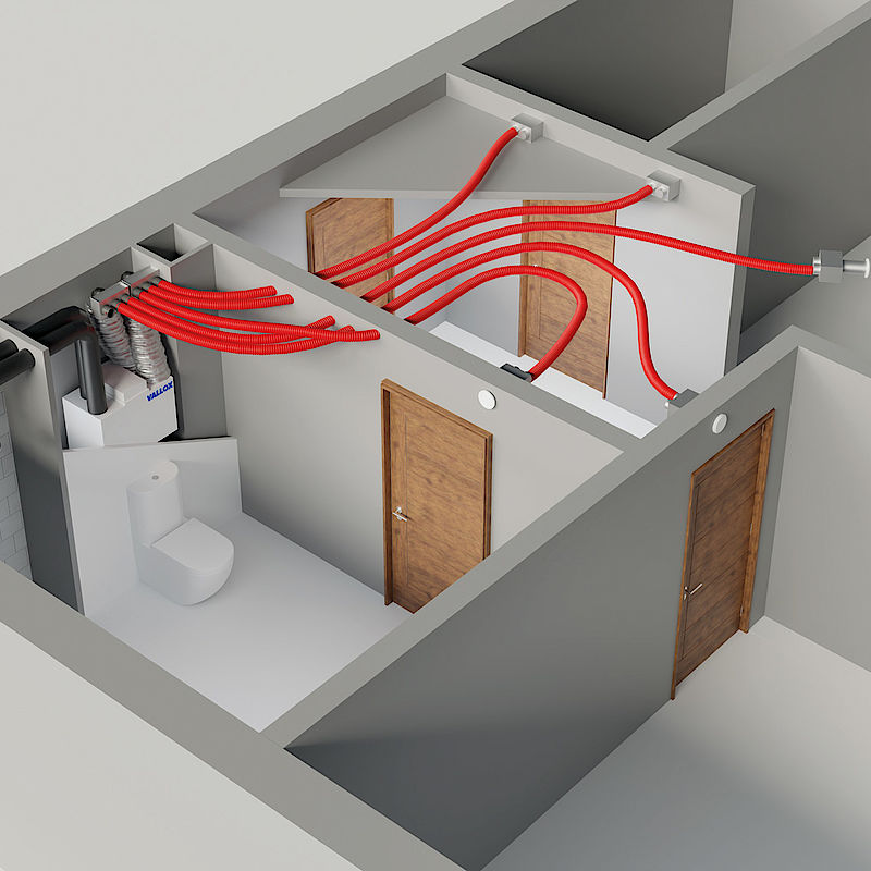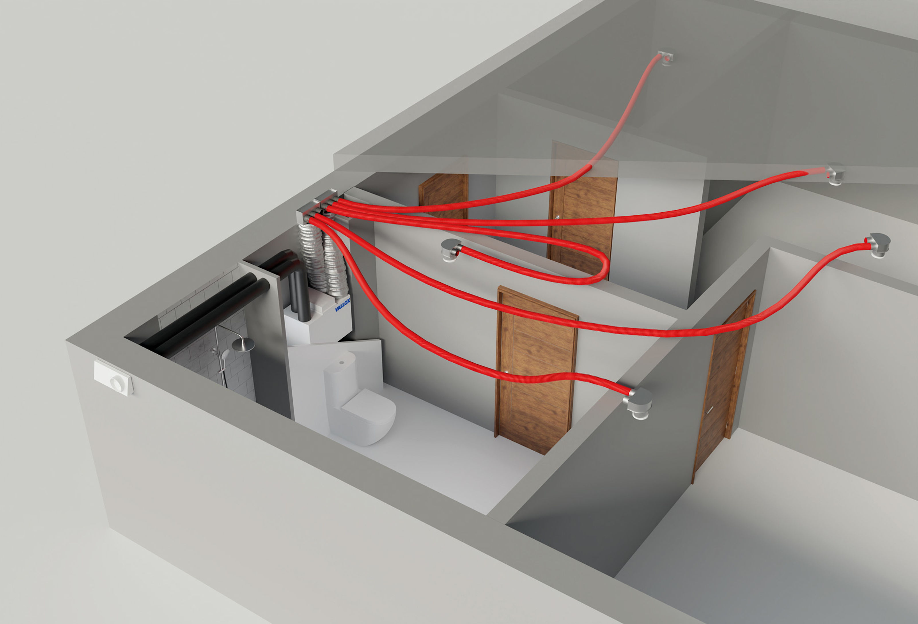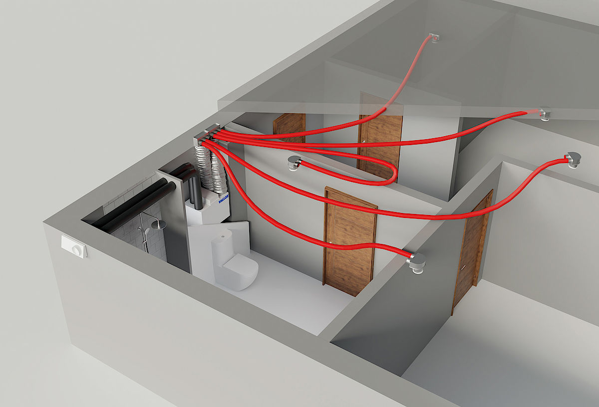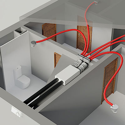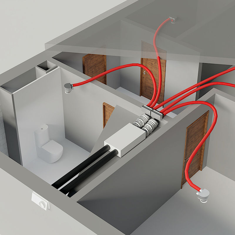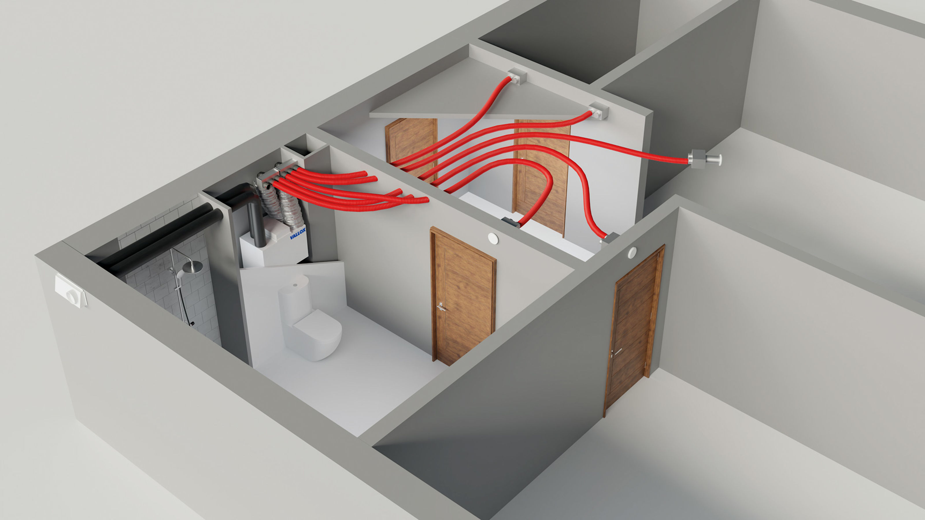 Ein Wand- und ein Deckengerät jeweils mit passendem Zubehör und Luftverteil-System – perfekt aufeinander abgestimmt für die Installation in oder unter der Decke. Pro Wohneinheit erreicht die Baustelle termingerecht ein Geräte- und ein Installationspaket je nach Anforderung vorkonfektioniert. Das Handwerk packt die Teile einfach aus und installiert sie fachgerecht. Der Bestellvorgang wird damit aufgrund von nur zwei Artikelnummern zum Kinderspiel.