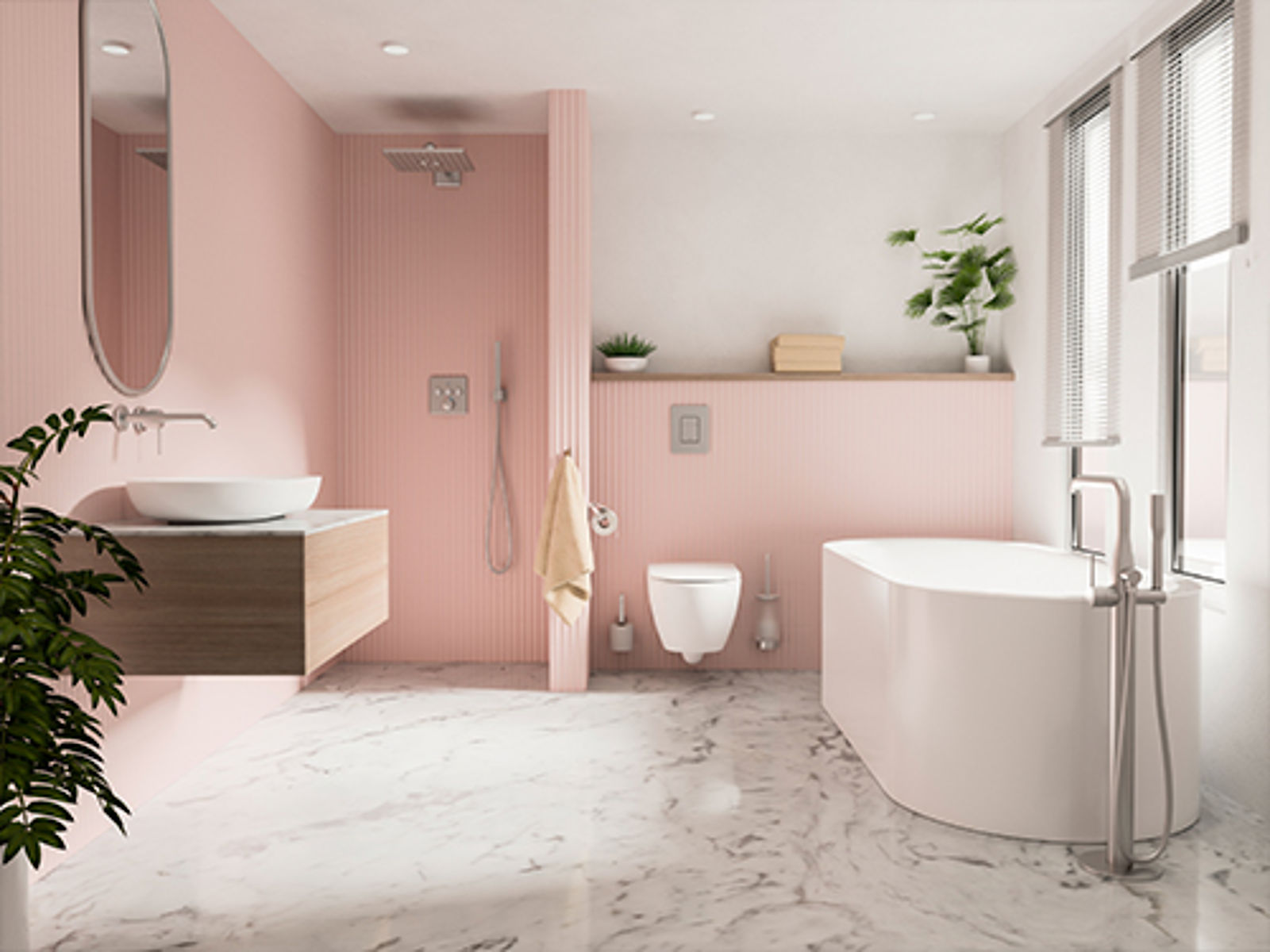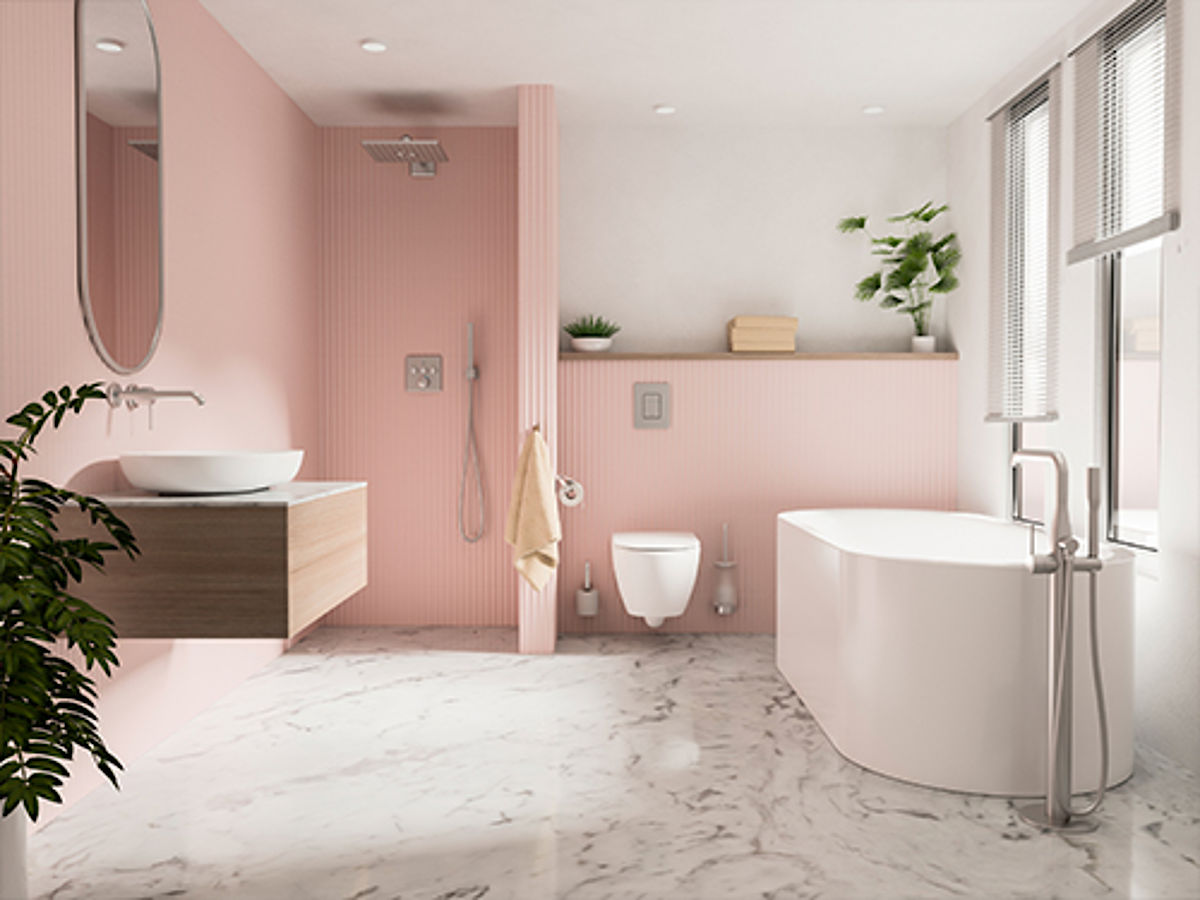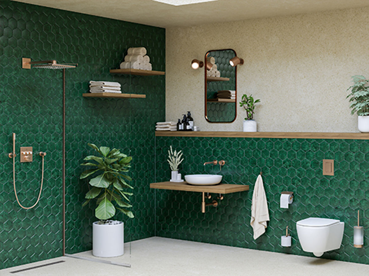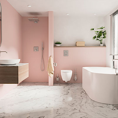 Warm Sunset setzt Akzente in originellen Badezimmerdesigns. Immer brillant, immer einzigartig. Der warme Roségold-Ton passt zu dunklem Stein, Marmor oder Beton sowie zu ungewöhnlichen Farben und Mustern. GROHE bietet eine Vielzahl von Produkten in Warm Sunset.