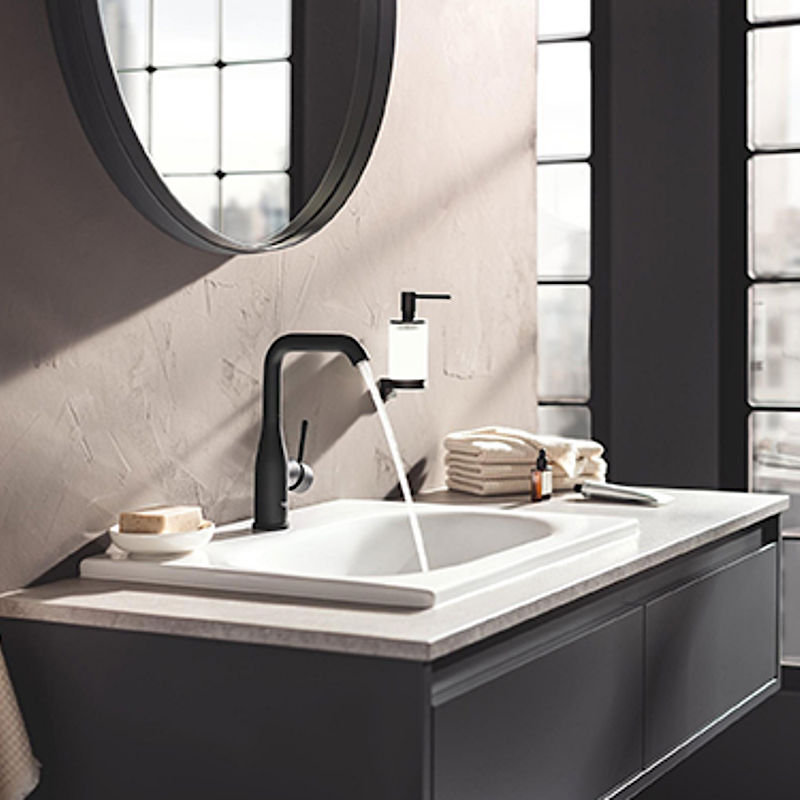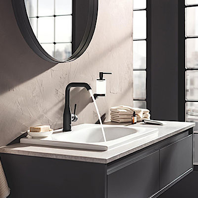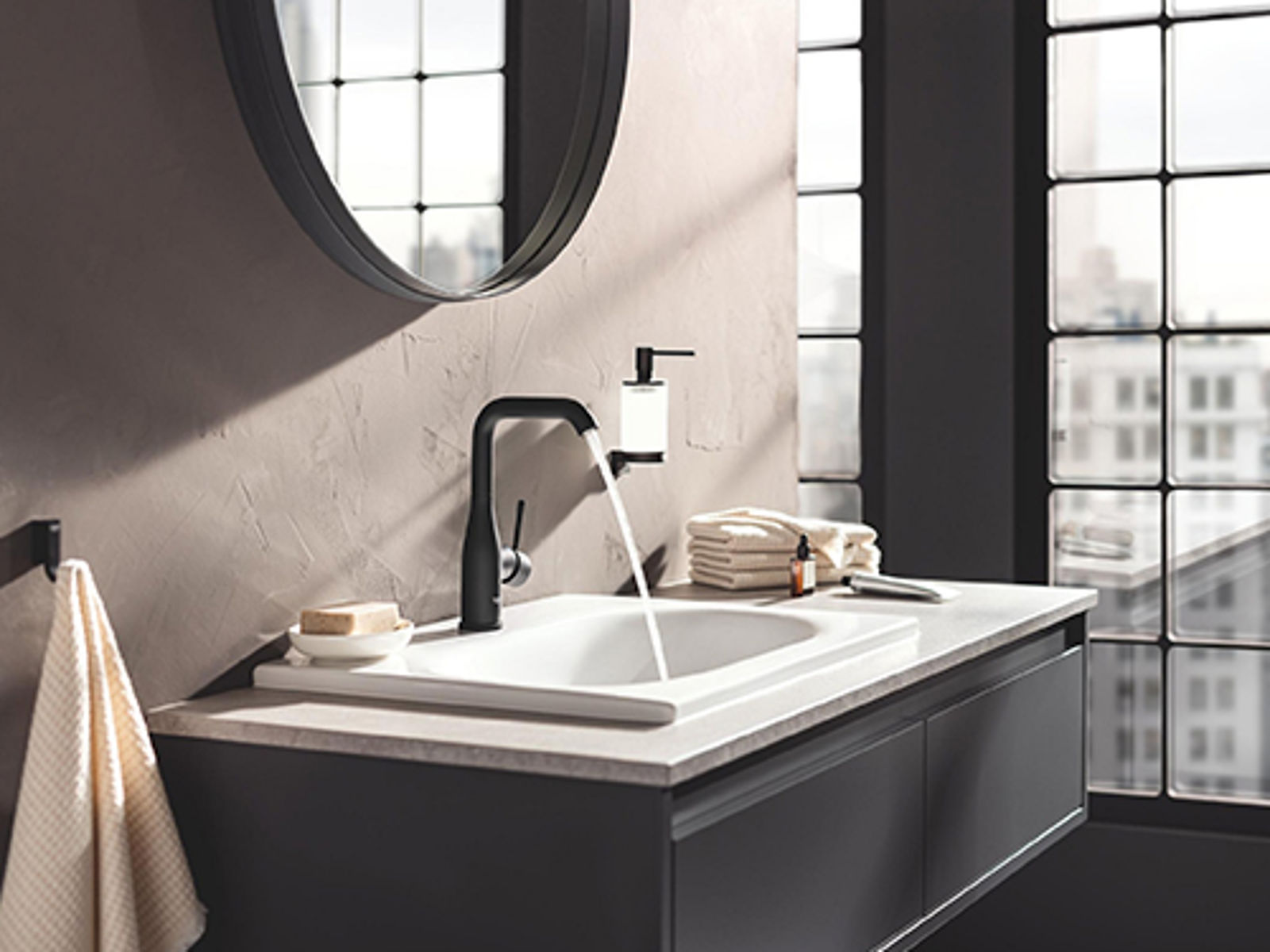 Mit der Farbe Phantom Black bietet GROHE ein besonders elegantes Schwarz, das gleichzeitig lange Haltbarkeit garantiert. Durch die Lackbeschichtung sind die GROHE Produkte in Phantom Black sehr langlebig und besser vor Korrosion, Verblassen und Kratzern geschützt. Darüber hinaus ist Phantom Black nicht so anfällig für Fingerabdrücke. Der geringere Reinigungsaufwand ist für alle attraktiv – auch für das Gastgewerbe, falls der Wunsch nach einem besonderen Design-Highlight im Waschraum oder Badezimmer besteht.