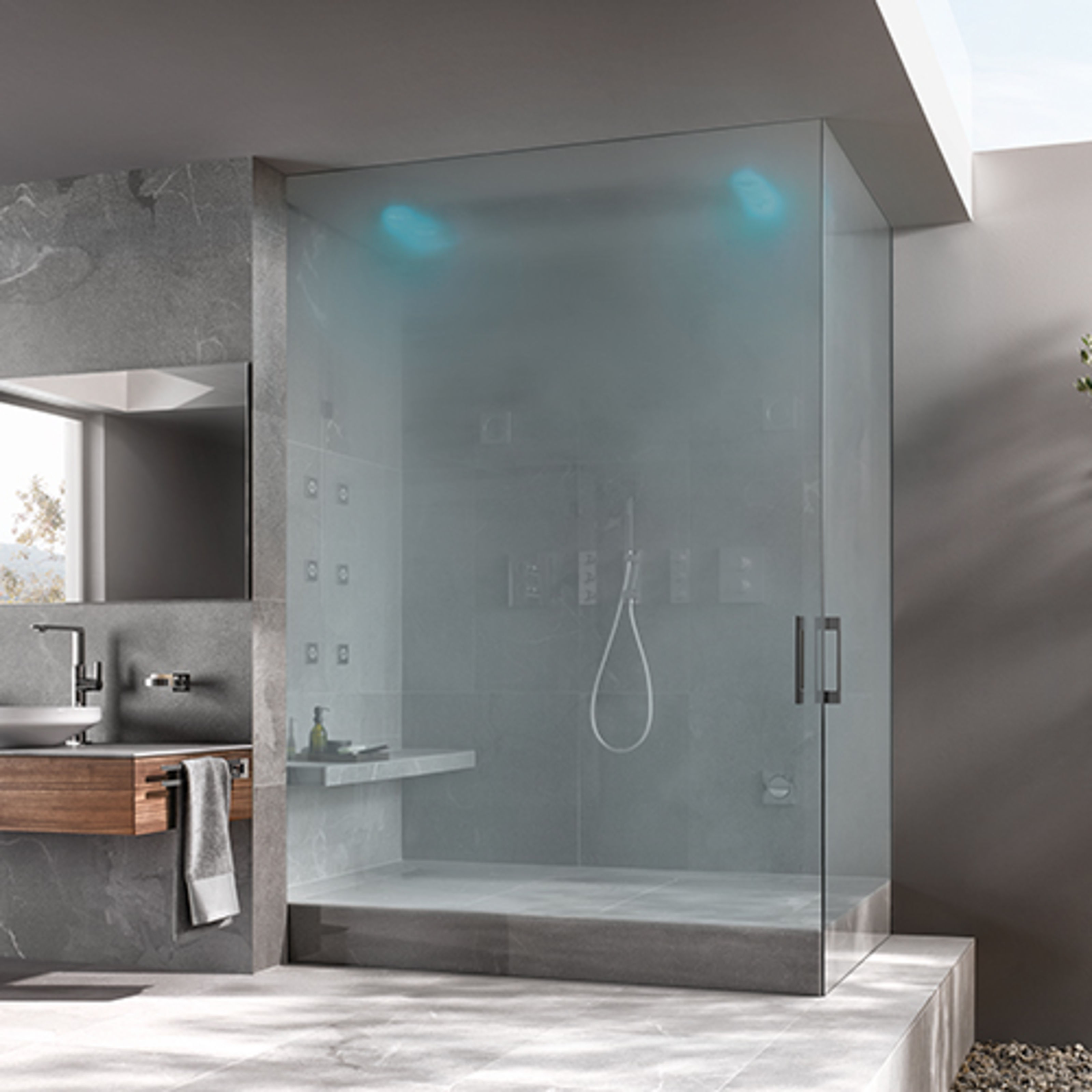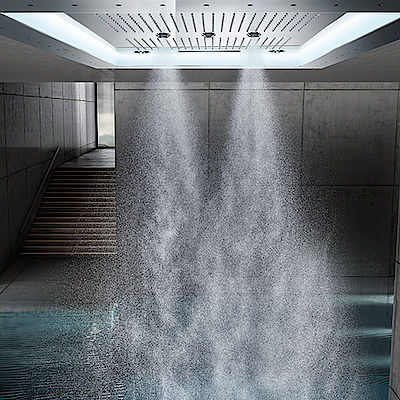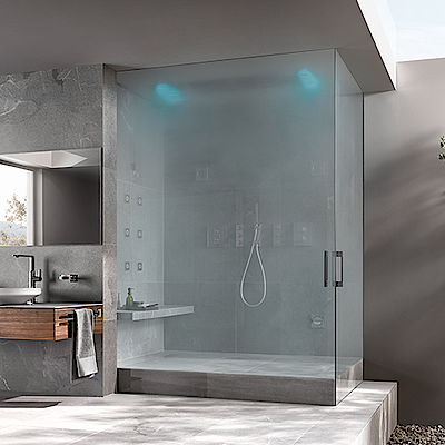 Armaturen, Brausen und Keramiken sowie Licht-, Klang- und Dampfmodule ermöglichen multisensorische Erlebnisse,