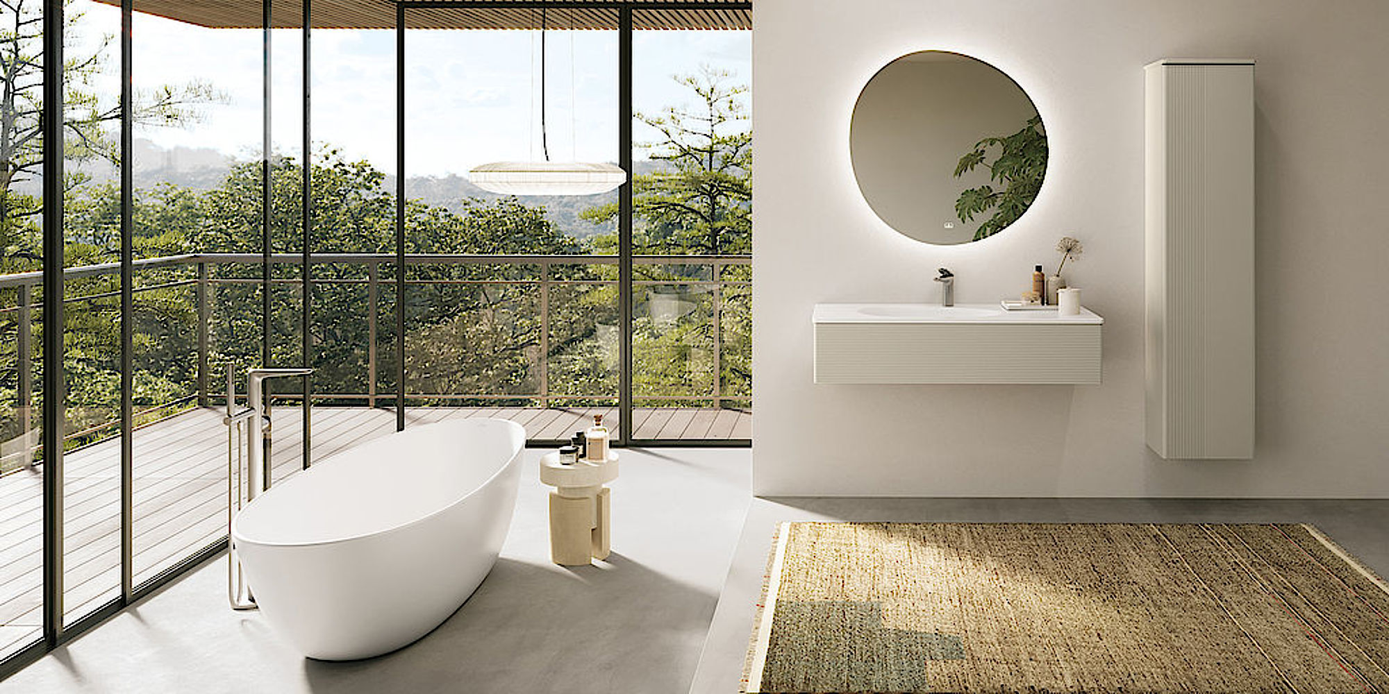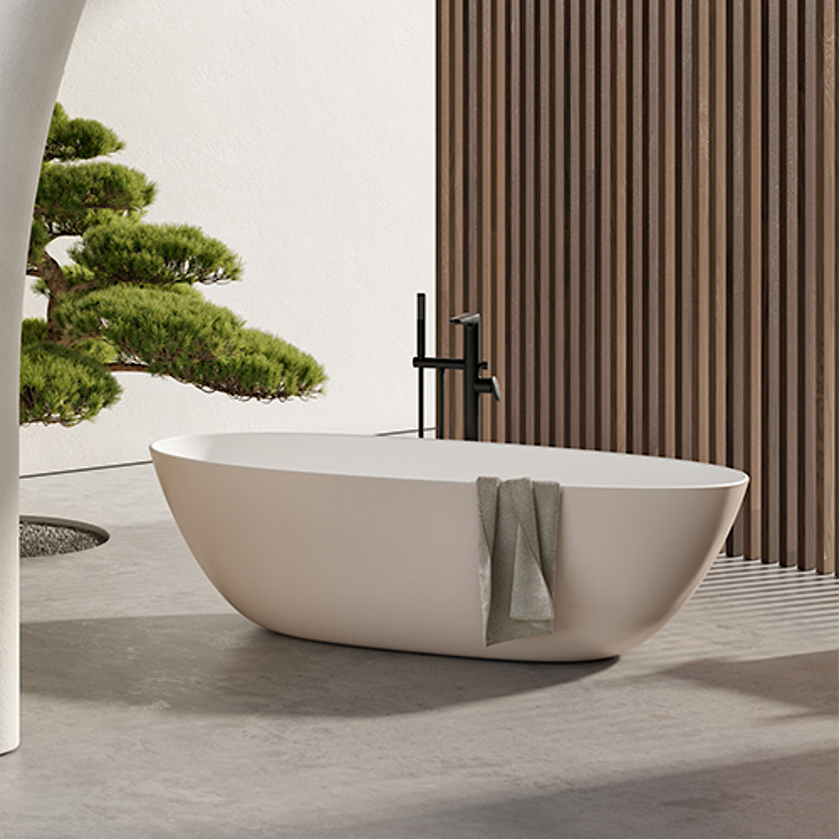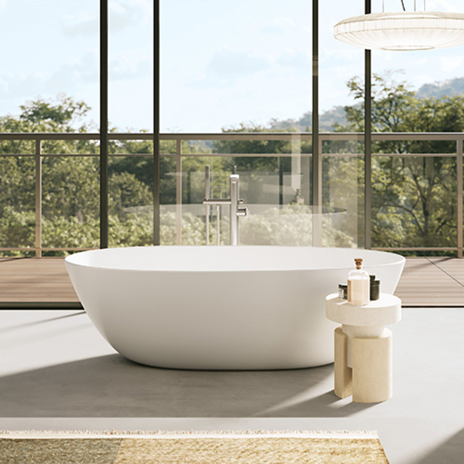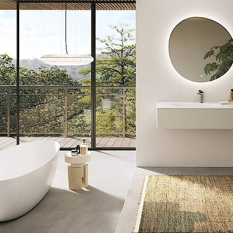 Ein weiteres Highlight von Antao: Die freistehende Badewanne. Kein Ort eignet sich besser, um die Zeit stillstehen zu lassen und neue Kraft zu tanken. Wie von selbst folgt die Wanne dem Leitmotiv der Kollektion: