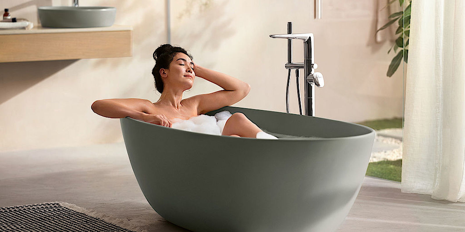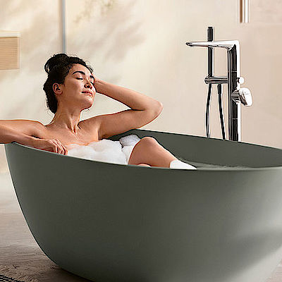 Die Antao Badewanne wird vollflächig in den Farben Alpin Weiß, Stone White, Grey und dem neuen Morning Green angeboten. Auch Bicolour-Varianten mit weißem Innenleben und farbiger Schürze sind in 200 RAL-Farben möglich. Zusammen mit der passenden freistehenden Badewannenarmatur mit ihren fließenden Konturen verwandelt die Wanne jedes Bad in eine Oase der Ruhe und Entspannung und sorgt für ein ganz persönlichen Wohlfühlmoment.