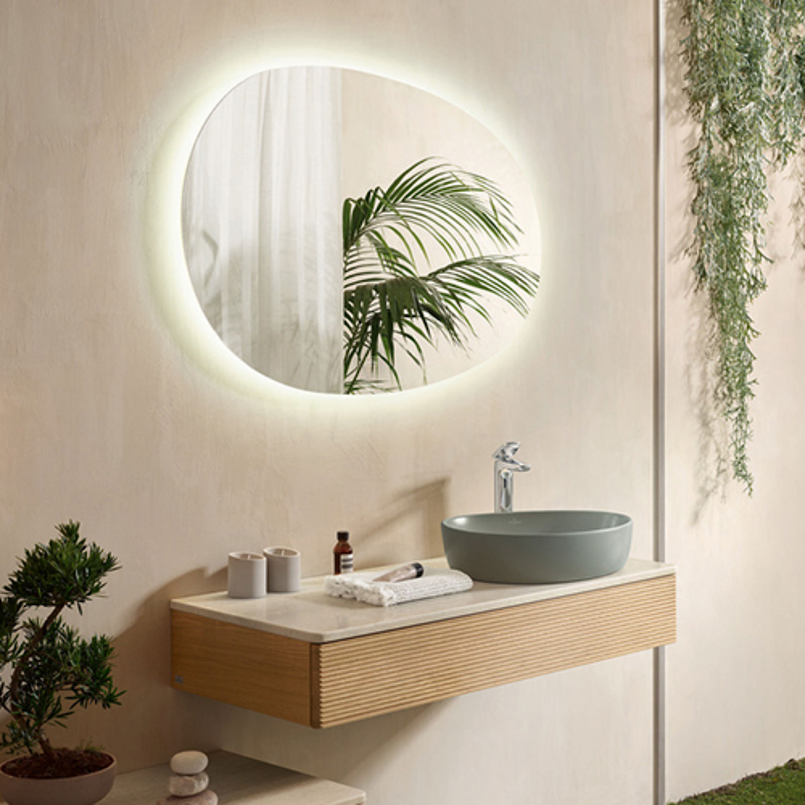 Die Ruhe, die Frische, die Klarheit – nichts macht den Kopf so frei wie ein Morgenspaziergang im Wald. Dieses Gefühl hat das Designer-Duo kaschkasch für Villeroy & Boch in eine neue Badkollektion übersetzt. Antao spielt mit der perfekt unperfekten Form des Tautropfens und entwickelt daraus eine ganzheitliche Kollektion, bei der sich Formen, Farben und Materialien zu einem harmonischen Ganzen fügen. Für ein Gefühl der Ruhe und Ausgeglichenheit,