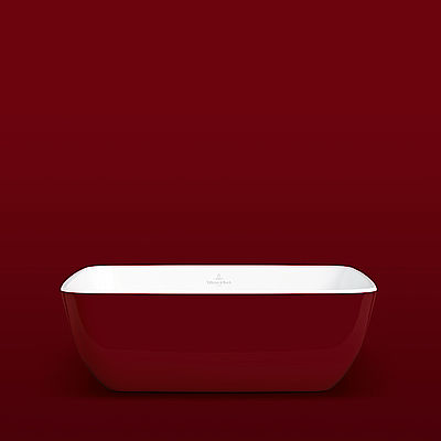Mit Colour on Demand bekommen Badewannen eine farbige Schürze in kräftigen Rottönen.