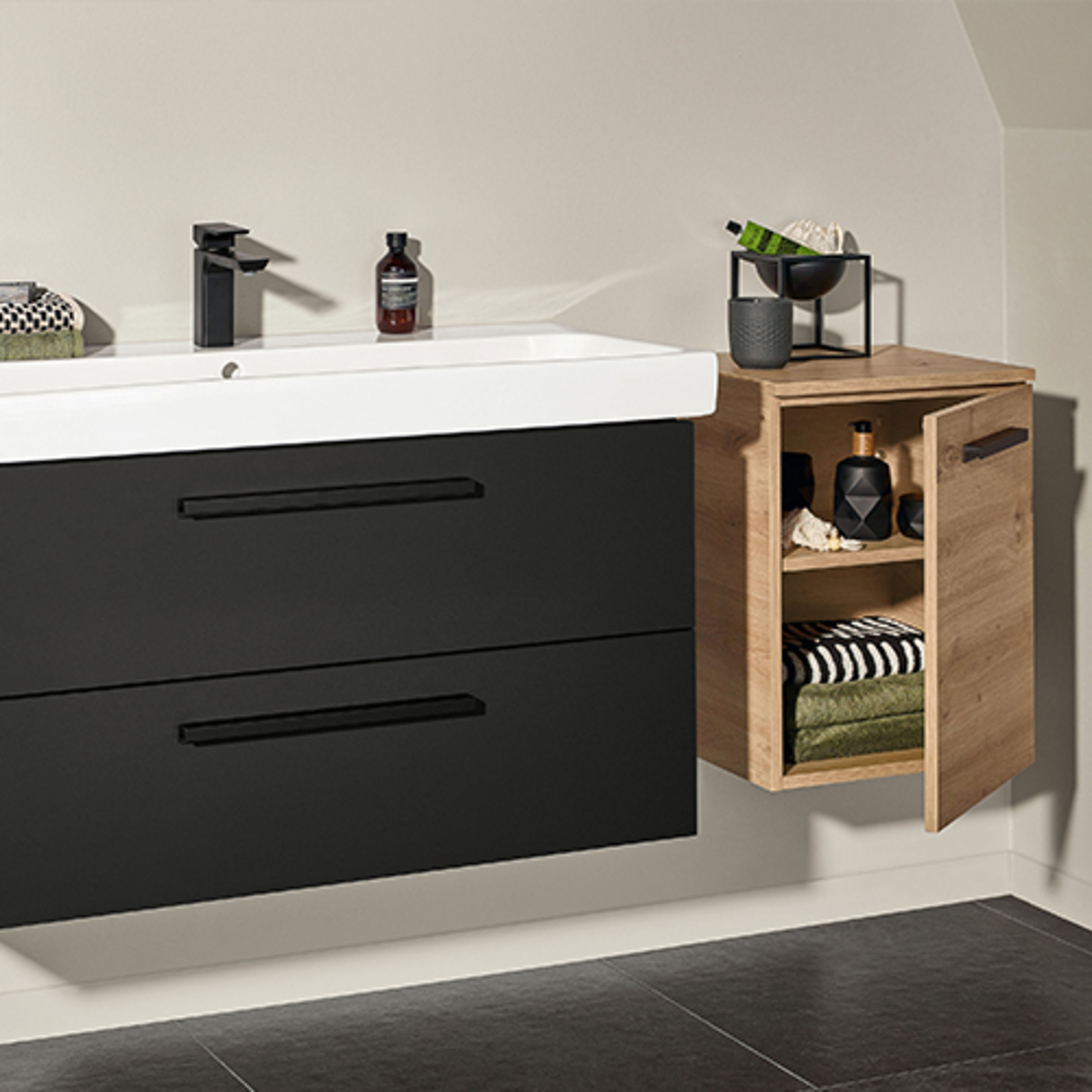 Für viele Modelle der erfolgreichen Villeroy & Boch-Serien Artis, Loop & Friends und Collaro stehen Unterbauten mit einem oder zwei sowie mit vier Auszügen zur Verfügung, zudem ist ein Unterbau mit Tür erhältlich.