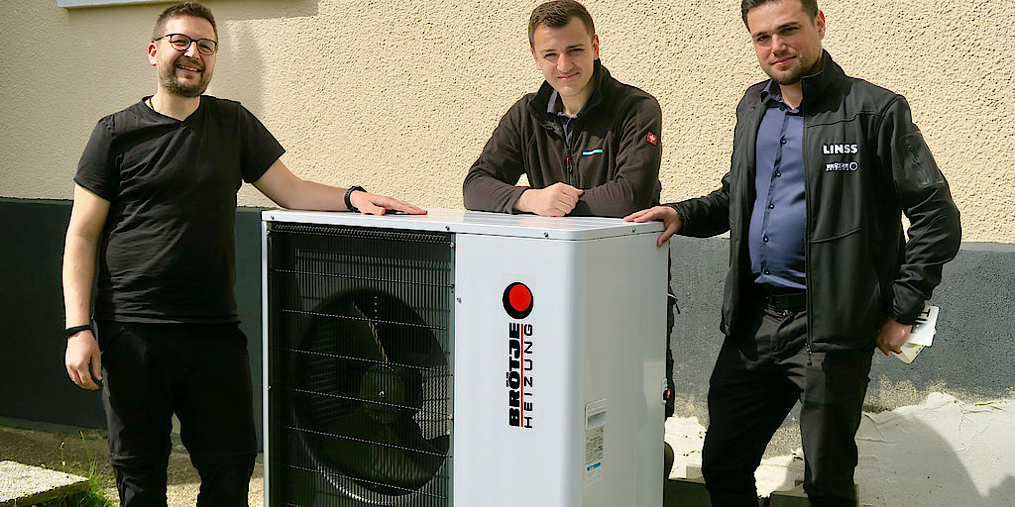 Zufriedene Gesichter v. l. n. r.: Auftraggeber und Bauherr, Martin Biedenbach, Projektleiter Dimitri Bruch und BRÖTJE Technischer Außendienst bei der Linss GmbH, Ivan Kessler.