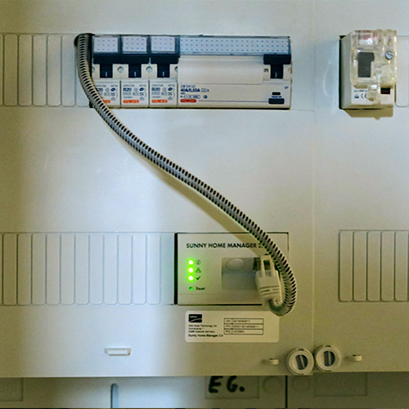 die durch einen SMA Wechselrichter geschickt und mit einem SMA Sunny Home Manager 2.0 kontrolliert werden.