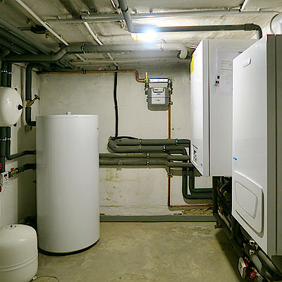 durch zwei im Keller aufgestellte Gasgeräte aus den 1990er-Jahren beheizt.