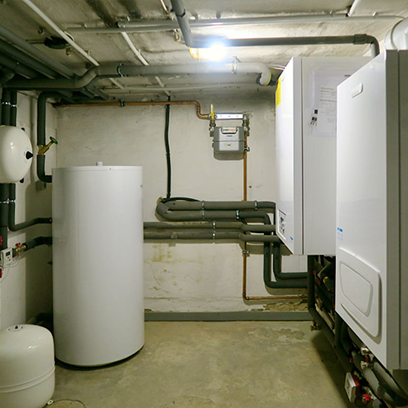 Der Heizungsraum beherbergt alle Komponenten der häuslichen Wärmeversorgung.