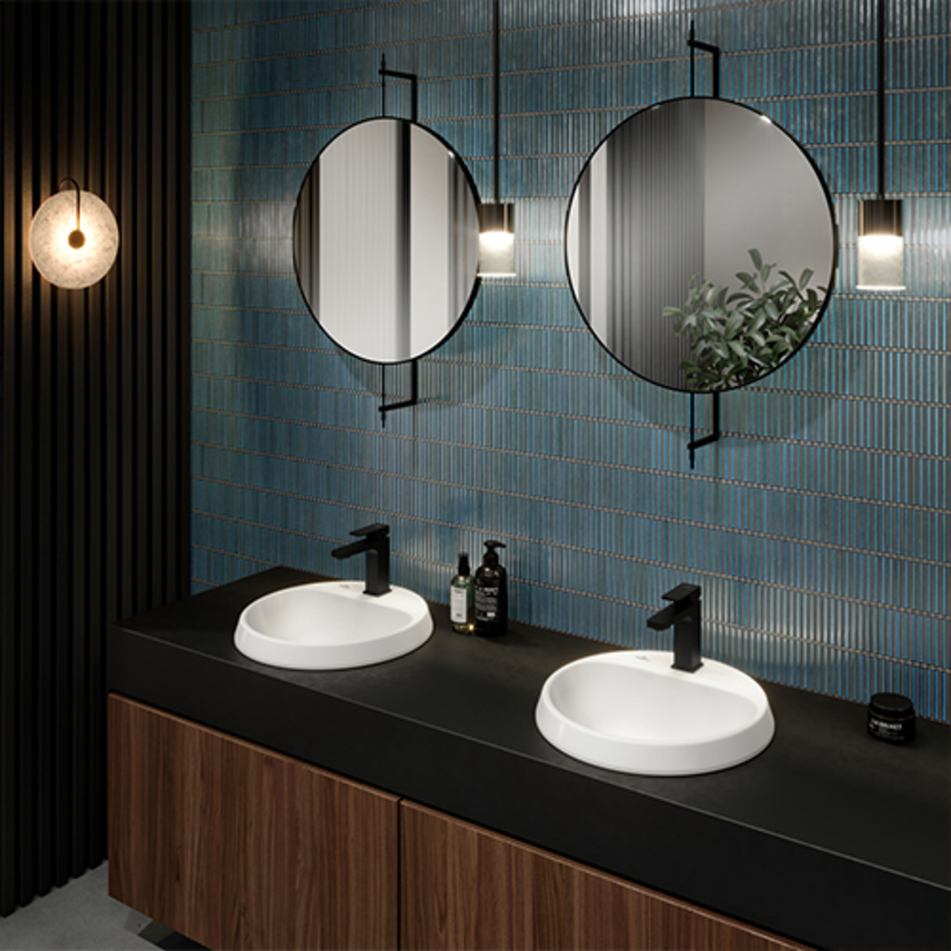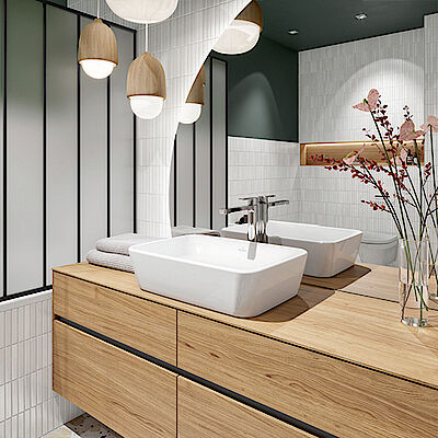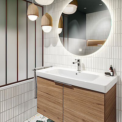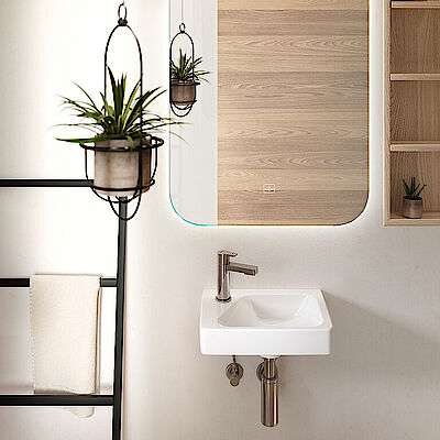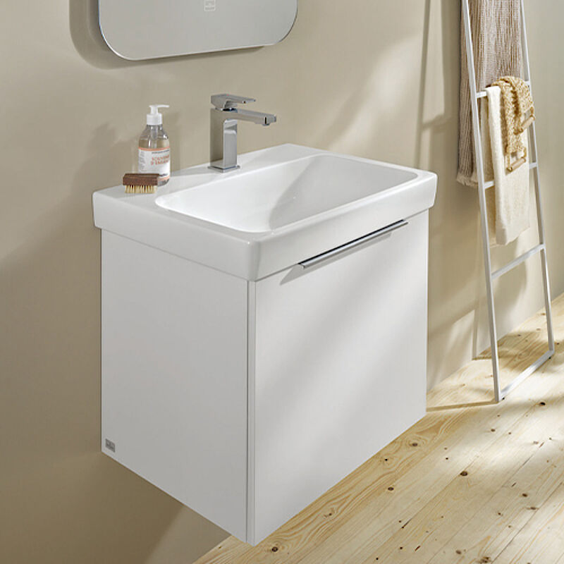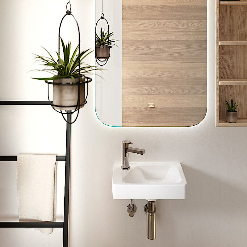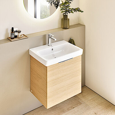 Die neuen Schrankwaschtische sind in einem modernen, eckigen Design angelegt und verfügen über ein großes, funktionales Becken. Es gibt sie in acht gängigen Größen von 36 cm bis 100 cm, darunter das neue Handwaschbecken 48 cm. Je nach Modell ist die Hahnlochbank, die als reinigungsfreundliche, keramische Ablagefläche dient, hinten oder seitlich angeordnet. Ausgewählte, stark nachgefragte Größen sind in drei verschiedenen Montageoptionen erhältlich: wandhängend, als Aufsatz- oder als Möbelwaschtisch. Sie können zudem optional mit der pflegefreundlichen Keramikoberfläche CeramicPlus und der antibakteriellen Glasur AntiBac ausgestattet werden und sind sowohl mit als auch ohne Überlauf lieferbar.