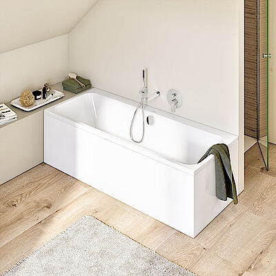 Zu den Architectura Einbaubadewannen aus weißem Hochglanz Acryl in neuem und modernem Design, kommen zeitgemäße Vorwandbadewannen hinzu. Vorwandbadewannen bilden eine Einheit mit der Wand und sind daher besonders beliebt. Mit einer Innentiefe von 41,5 cm bieten die Wannen hohen Badekomfort und sind zugleich sparsam im Wasserverbrauch. Alle Wannen sind als Duo-Modell mit mittigem Ablauf designed und dadurch besonders flexibel. Für noch mehr Badevergnügen können sie mit einem Whirlpoolsystem ausgestattet werden: bei den Vorwandbadewannen gibt es die Option für einen Airpool und bei den Einbauwannen sind sämtliche Whirlpoolvarianten von Villeroy & Boch möglich. Die Einbauwannen sind in vier Größen von der platzsparenden Wanne bis zum großzügigen Zwei-Personen-Modell erhältlich. Die sechs Vorwandbadewannen gibt es zur Montage an einer geraden Wand oder in einer rechten bzw. linken Raumecke jeweils in zwei Größen.