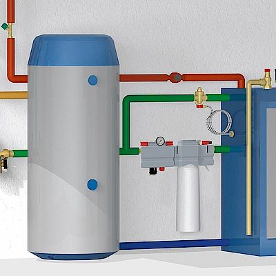 Um Wasser in die Heizung zu füllen, wird die Heizungsanlage an das Trinkwassernetz angeschlossen – entweder über eine dauerhafte Verbindung oder mittels eines Schlauchs. In beiden Fällen gilt: An der Entnahmestelle muss sichergestellt sein, dass kein Heizungswasser in das Trinkwassersystem zurückdrücken oder -fließen und dort für Verunreinigung sorgen kann. Vorgeschrieben ist daher ein sogenannter Systemtrenner.