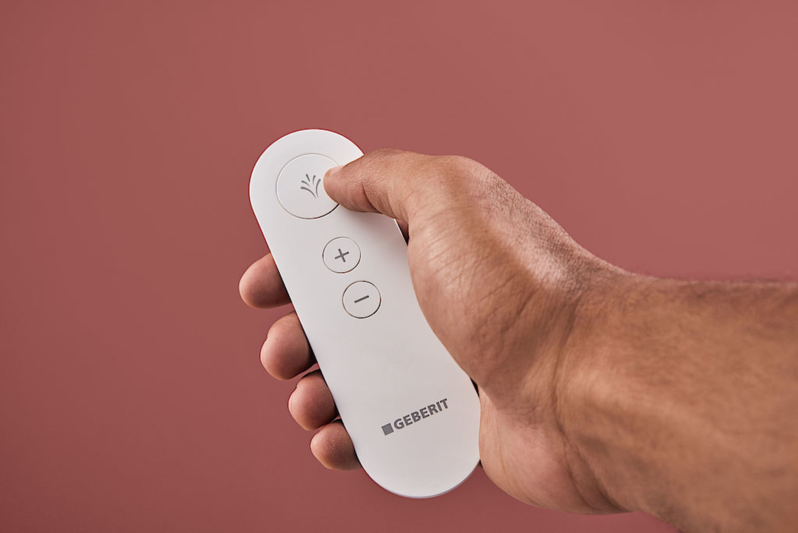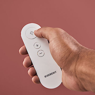 Mit der intuitiven Fernbedienung lässt sich der Duschvorgang des AquaClean Alba starten und die Duschstrahlstärke komfortabel regulieren.