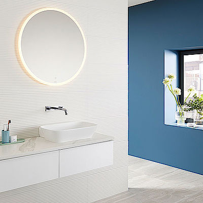 Eine weitere Kombinationsmöglichkeit ist ein ONE Aufsatzwaschtisch mit einem Waschtischunterschrank der Badezimmerserie iCon.