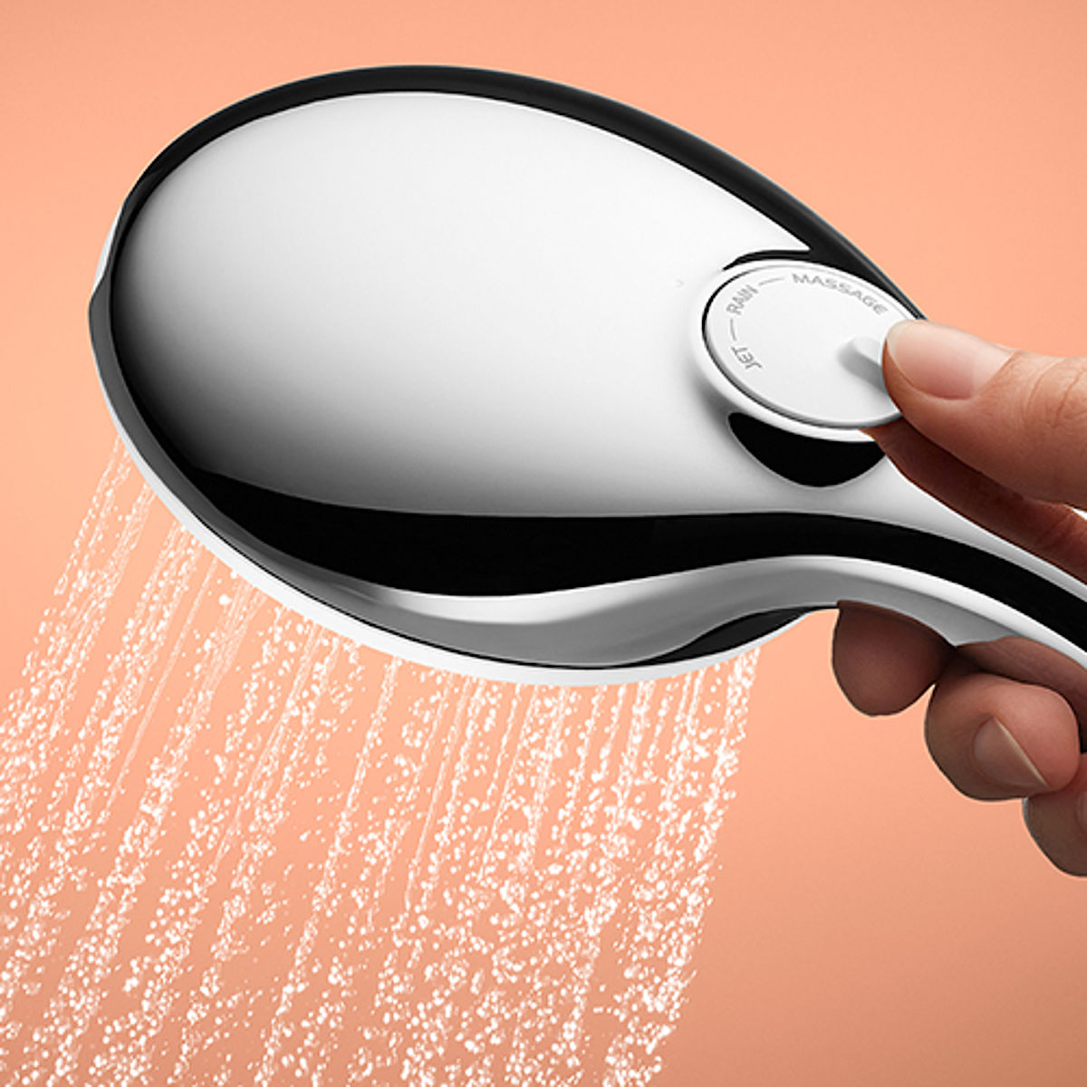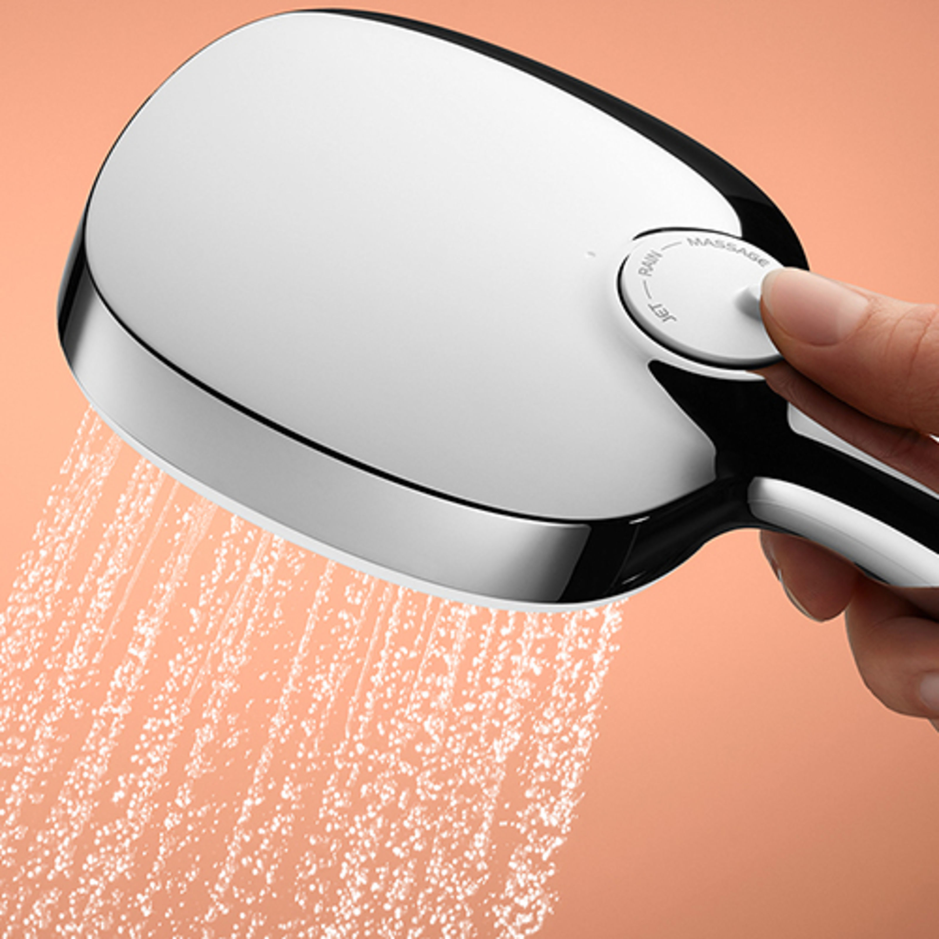 Eine Bewegung mit dem Daumen, und die Umstellscheibe an der Brausen-Oberseite rastet hörbar ein: Bei der neuen Handbrause GROHE Tempesta 110 wählen Nutzer:innen intuitiv zwischen bis zu drei Strahlarten. Alle Brausen verfügen über den Rain-Strahl für sanften Duschgenuss, zusätzlich auswählen lassen sich je nach Modell der Jet-Strahl für intensive Reinigung und der Massage-Strahl für die Belebung von Körper und Geist. Die Bedienung ist dank SmartSwitch-Funktion intuitiv und gelingt auch mit seifigen Händen problemlos.