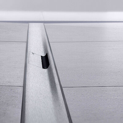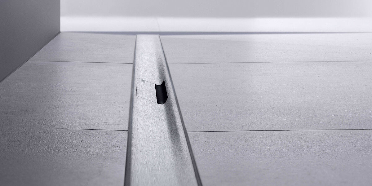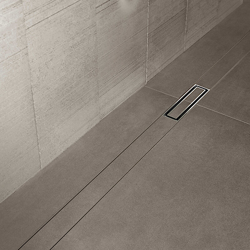 Die Geberit Duschrinne CleanLine50 verfügt über ein integriertes Gefälle für eine schnelle Wasserableitung.