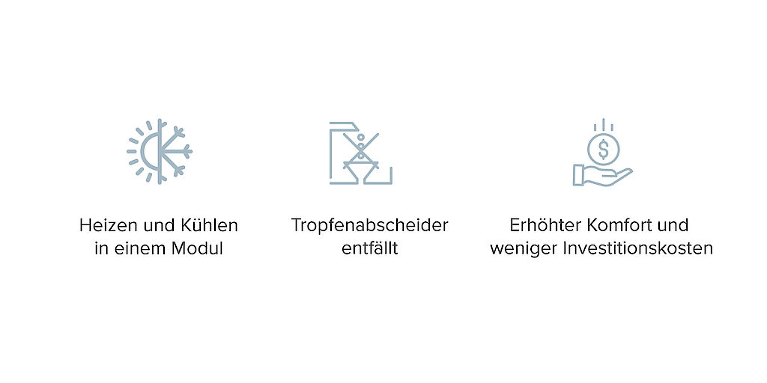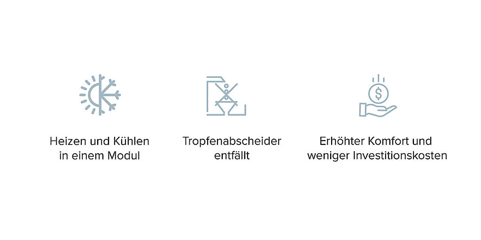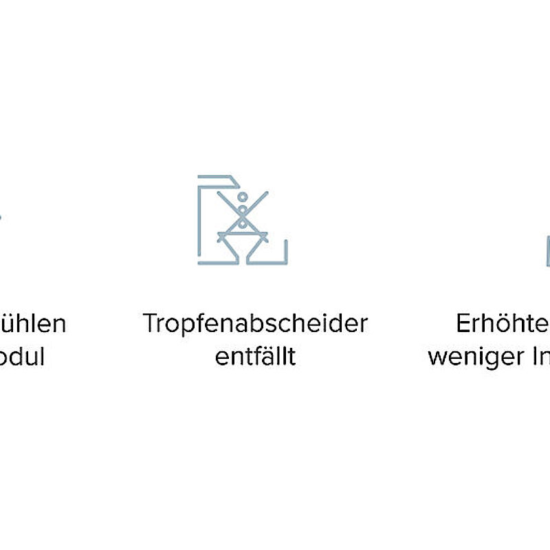 Dank der hydrophilen Beschichtung der Aluminiumlamellen wird entstehendes Kondensat effizient abgeführt. Dadurch entfällt die Installation eines Tropfenabscheiders. Das spart Bauraum, reduziert den Druckverlust und senkt die Investitions- und Betriebskosten.