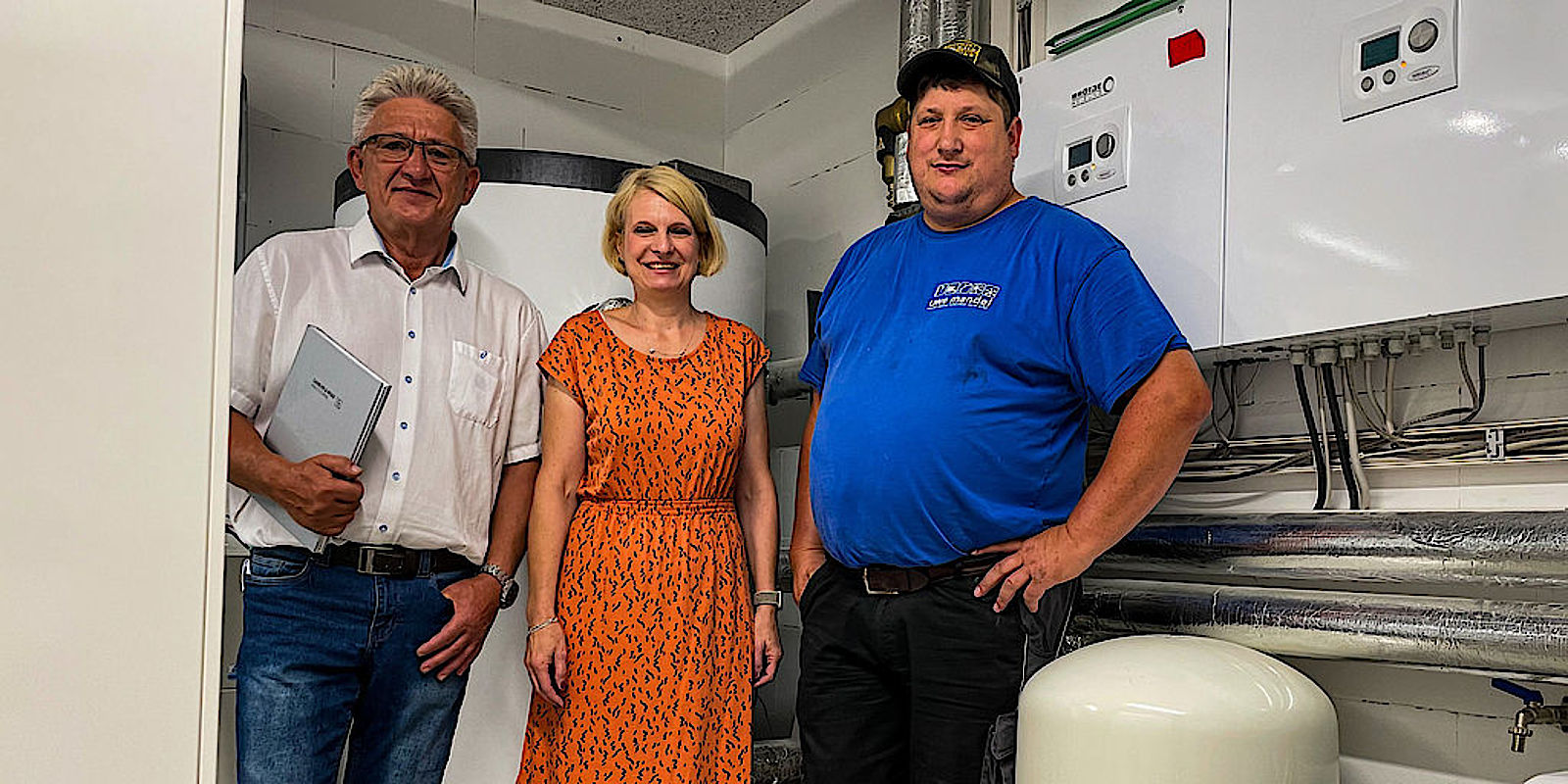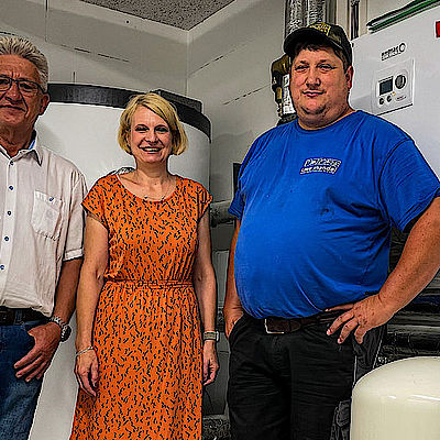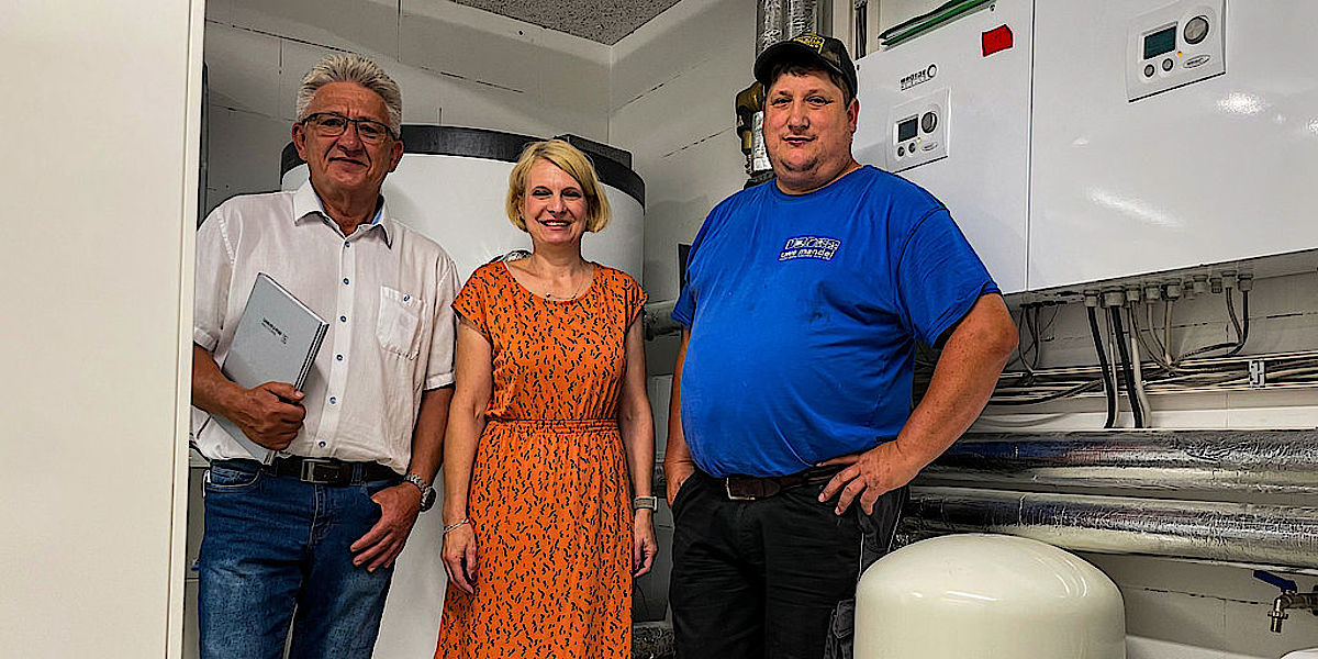 Ein stolzes Team (v. l. n. r.): Willy Emmert, (Technischer Berater für Brötje), Sandra Mayer (Bauherrin), Uwe Mandel (SHK-Meister und Flaschner).